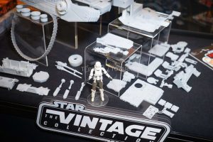 News is starting to trickle in from HasCon 2017. First up is a look at some new and upcoming 3.75″ Star Wars action figures from Hasbro. It seems the Vintage Collection will be getting new figures of Jyn Erso, a Hoth Rebel trooper, Kylo Ren, a First Order Stormtrooper and Rey (Scavenger). It seems we will also be getting a Rogue One Imperial tank vehicle as well! The Vintage Collection figures feature loads of articulation and appear on classic vintage style card backs.