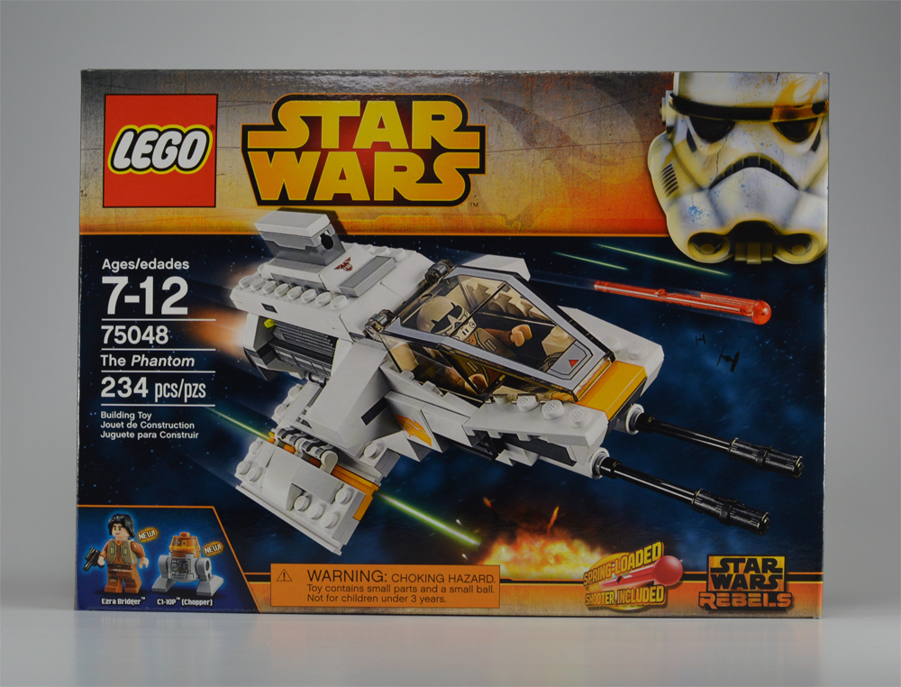 Join the Rebel resistance against the evil Empire in The Phantom attack shuttle, as seen in the exciting Star Wars: Rebels animated TV series! Place young Rebel hero Ezra Bridger™ in the detachable cockpit and store his cadet helmet and blaster in the cargo hold. Fit Ezra’s Droid companion, C1-10P™, in the back, close the roof, unfold the wings for flight mode and launch into battle. Fire the 2-way spring-loaded shooter to repel attacks from the front or the rear. Includes an Ezra Bridger™ minifigure with a weapon and accessory, plus a C1-10P™ (Chopper) figure.