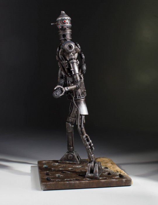 The fearsome assassin droid IG-88 was a rival to Boba Fett and was an imposing presence when he arrived on the Executor, answering Darth Vader’s call for ruthless bounty hunters. Far more terrifying than battle droids were the assassin droids, who were independently programmed mechanical killers that roamed the galaxy and had no masters. IG-88’s battered, chrome, war droid exterior suggests a richer, more violent history than we were able to glimpse in The Empire Strikes Back. The artists a Gentle Giant take you on a journey to see IG-88 in his prime and on the hunt with his cold, mechanical stare fixed on his prey. With his guns drawn, IG-88 won’t be stopped until his has his target dead or alive! IG-88 is the second statue in our new 1:8th Collector’s Gallery line, celebrating 40 years of the Star Wars universe. Each limited edition, hand-painted piece is cast in high quality polyresin with crisp details. This statue also comes individually numbered with a matching certificate of authenticity.