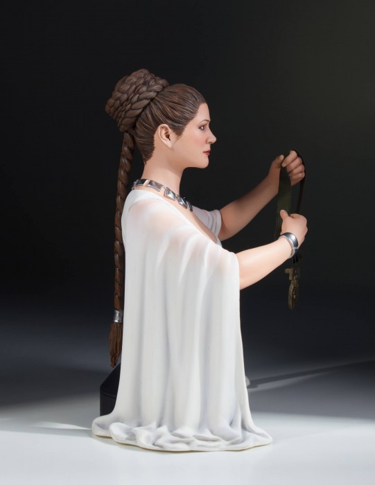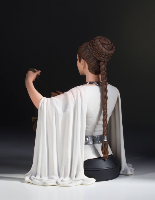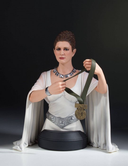 In the triumphant scene at the end of Star Wars: A New Hope, we see Princess Leia decorating Luke Skywalker and Han Solo with the Medal of Yavin, for their gallant effort that resulted in the destruction of the Imperial Death Star! Our previous releases include both Han Solo and Luke Skywalker. Now we complete the trilogy with the royal presenter herself, Princess Leia Organa of Alderan. This amazing mini bust illustrates the pride that Leia shows at the end of the film as she knows the Death Star has been destroyed and no other planets will face the same fate as her home world. She stands proudly on the stage with her fellow heroes of the Rebellion. This mini bust was digitally sculpted by our master artisans, using actual archival footage and designs. Each bust is rendered using the highest quality polystone, and is hand painted to exacting detail. All of the pieces in this series are individually numbered and paired with a matching certificate of authenticity.