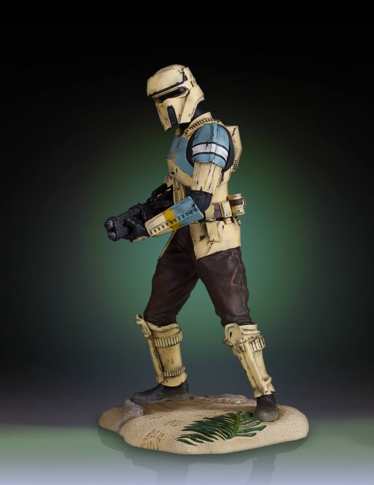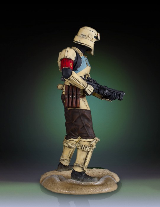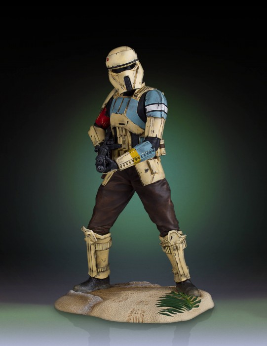 From Rogue One: A Star Wars Story; come the Empire’s Shoretoopers. Armored soldiers who patrol the beaches of the planet Scarif, the secret location of the imperial army and its Death Star construction facility. These well-trained, specialist Troopers are at the ready to defend against the always imminent Rebel incursions. This Shoretrooper captain is armed with a heavy blaster and is depicted standing on the shores of Scarif, posed to take on the rebel insurgents. Sculpted digitally to ensure precision form and character correct accuracy. Each detailed bust is cast in durable, stone-like, poly-urethane material that is cold to the touch. Featuring a heavy blaster-rifle, sculpted hip pouches and gear. Every trooper is hand painted with correct rank and insignia applications with battle worn, weathered details. Each limited edition, hand-painted, polyresin classic bust comes individually numbered and is paired with a matching certificate of authenticity.