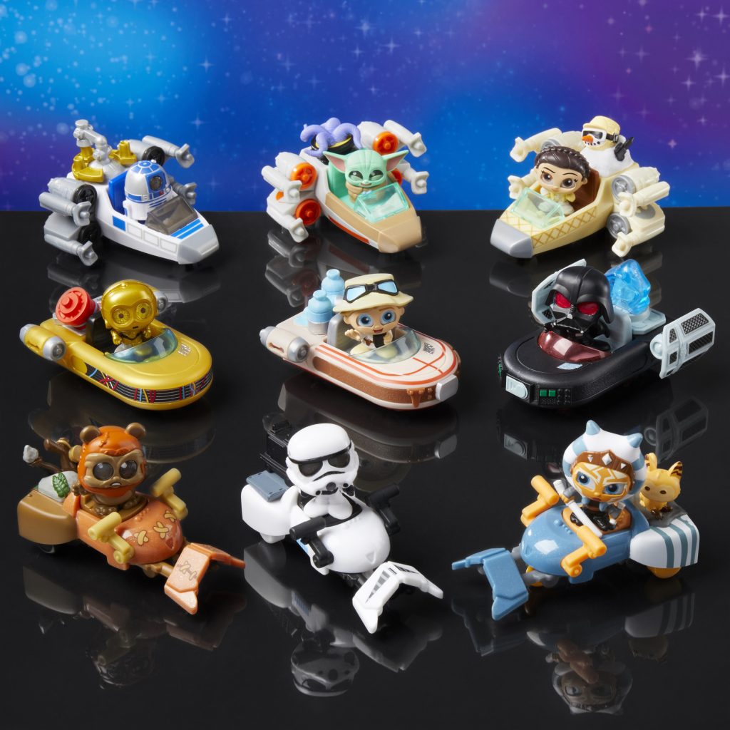 Fuel up and get ready to go, because an out-of-this-galaxy surprise is in store with STAR WARS™ Doorables Galactic Cruisers. Open the package to reveal 1 of 10 different STAR WARS mini figures complete with their own modes of transport that really roll. Find Darth Vader, R2-D2, Wicket, Princess Leia, a stormtrooper, C-3PO, Grogu, Luke Skywalker, Ahsoka Tano, and a special-edition flocked Chewbacca – all driving imaginative speeder bikes, landspeeders, and starfighters. Each figure stands approximately 1.5 inches tall and features stylized detailing with glittery eyes. Imagine the fun of creating displays and obstacle courses for mix-and-match adventures. STAR WARS Doorables Galactic Cruisers make stellar birthday – or anytime – surprises for fans of STAR WARS toys and kids ages 5 years and up. Ages 5+, SRP $9.99 at Amazon, Target, and Walmart