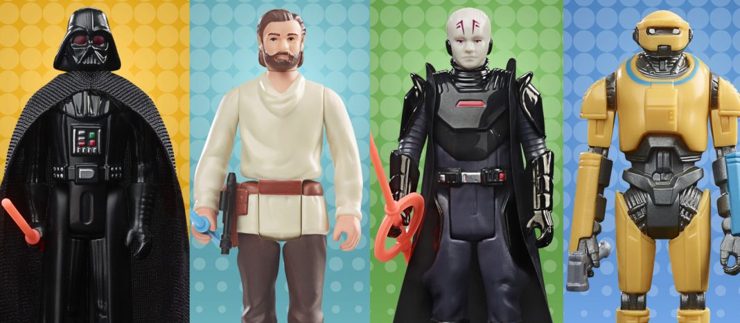Obi-Wan Wednesdays continues today with a reveal for four new Retro Collection figures based on the new Disney+ series. Dark Times Darth Vader, Wandering Jedi Obi-Wan Kenobi, Fifth Brother Inquisitor, Grand Inquisitor and NED-B will all get 3.75 inch treatment in the style of 70s Kenner figures. All four figures will go up for pre-order tomorrow, June 9th, at 1PM eastern at every major retailer.