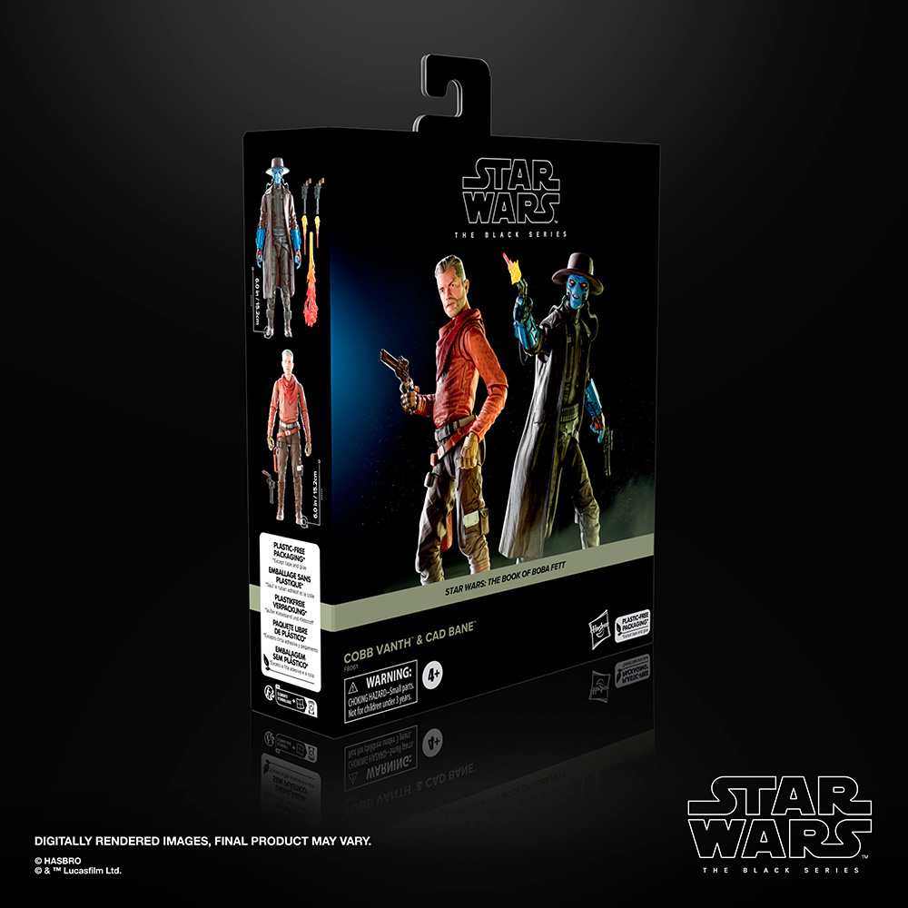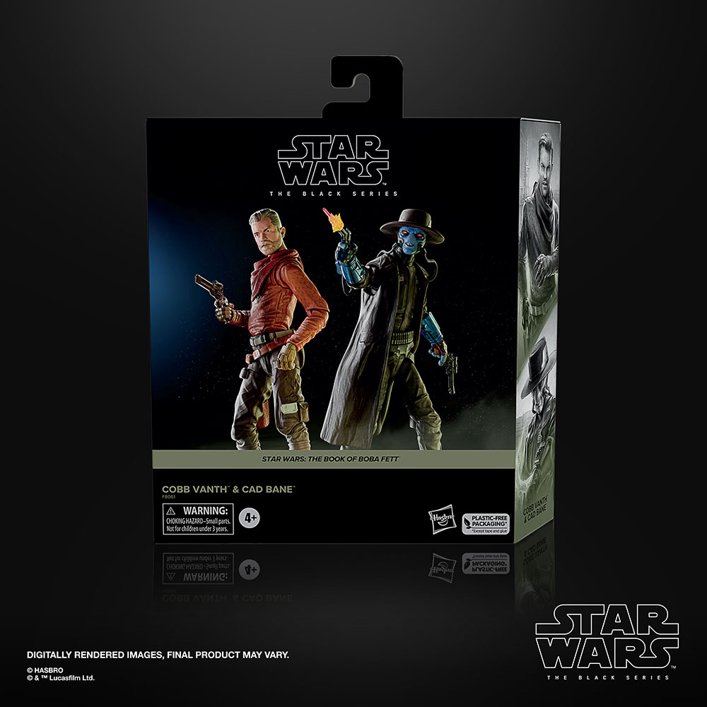 STAR WARS fans and collectors can imagine scenes from the STAR WARS galaxy with this premium 6-inch STAR WARS: THE BLACK SERIES COBB VANTH & CAD BANE 2-pack, inspired by the characters’ appearances in the STAR WARS: THE BOOK OF BOBA FETT. Fans and collectors can display these fully articulated figures featuring premium detail and multiple points of articulation in their collection. Includes 2 figures and 6 entertainment-inspired accessories.