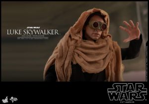 This Deluxe Version will exclusively include an additional head sculpt with an interchangeable all-new hair sculpture, an extra piece of interchangeable battle damaged right hand, dark grey tunic with belt, and the Tatooine sandstorm goggles and cloak as seen in the deleted scenes.