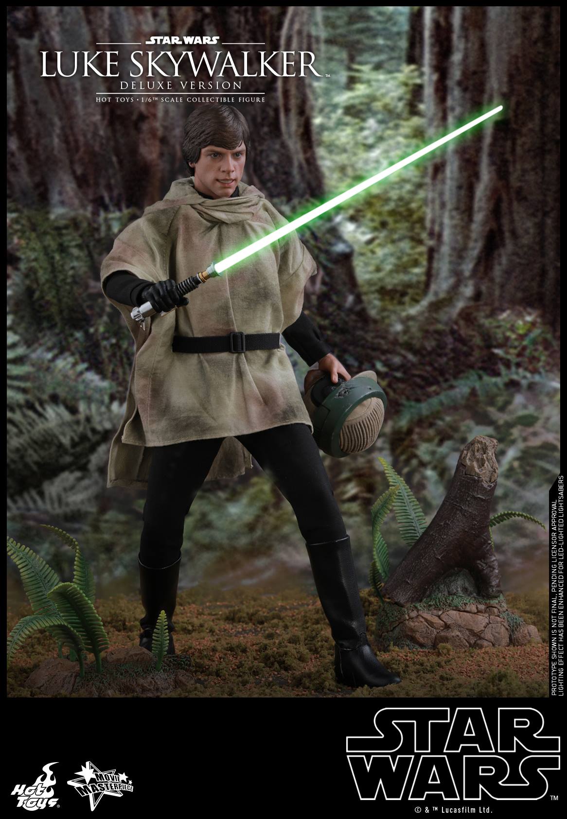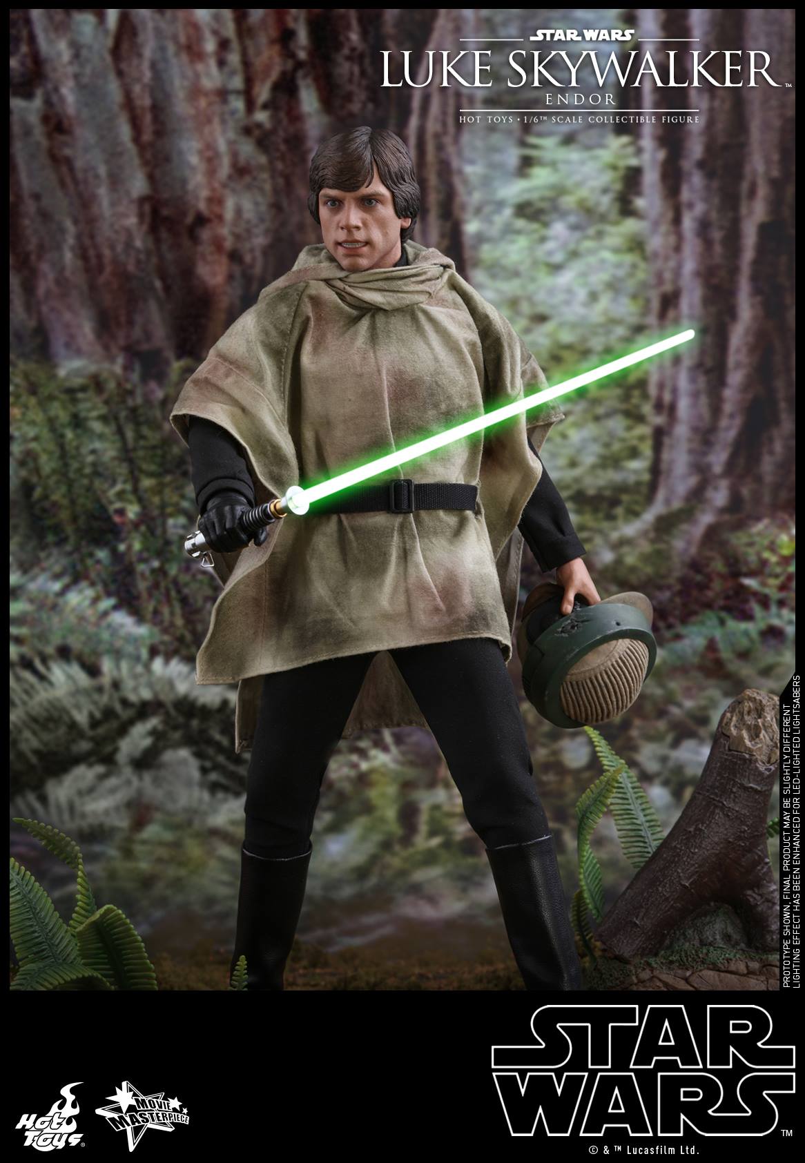 Masterfully crafted based on the appearance of Luke Skywalker in the final chapter of the original trilogy, the new collectible figure features a newly developed head sculpt with remarkable likeness, finely tailored costumes, the helmet and camouflage cloak Luke wore on Endor, a LED light-up lightsaber, an interchangeable lightsaber blade emulating the weapon in motion, a blaster, and a themed figure stand.