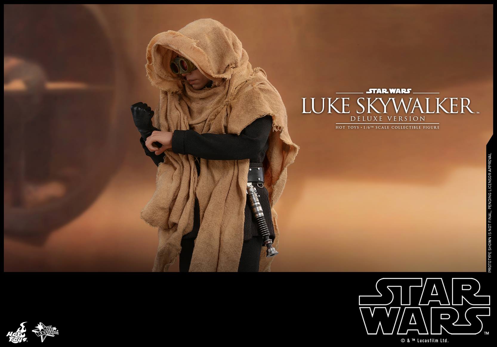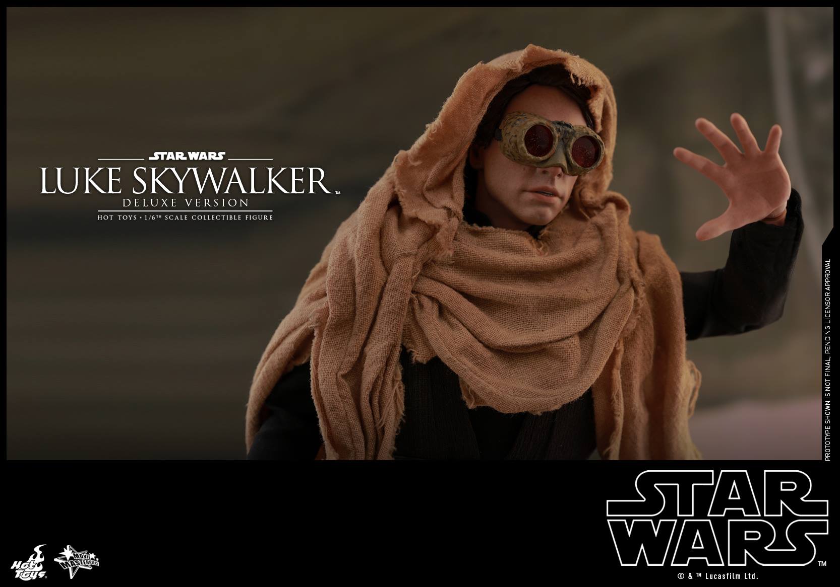 This Deluxe Version will exclusively include an additional head sculpt with an interchangeable all-new hair sculpture, an extra piece of interchangeable battle damaged right hand, dark grey tunic with belt, and the Tatooine sandstorm goggles and cloak as seen in the deleted scenes.