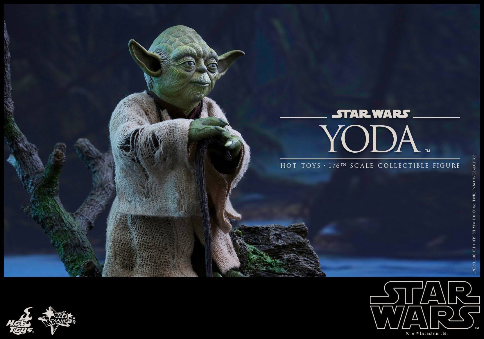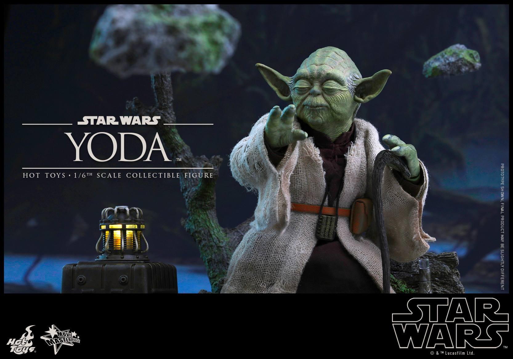 The highly-accurate collectible figure is specially crafted based on the image of Yoda in Star Wars: Episode V The Empire Strikes Back. It features two newly developed head sculpts, specially developed body, finely tailored costume, a range of detailed accessories including a cane, crate container, small lamp, LED-light up power unit, and Dagobah diorama figure base with rocks.
