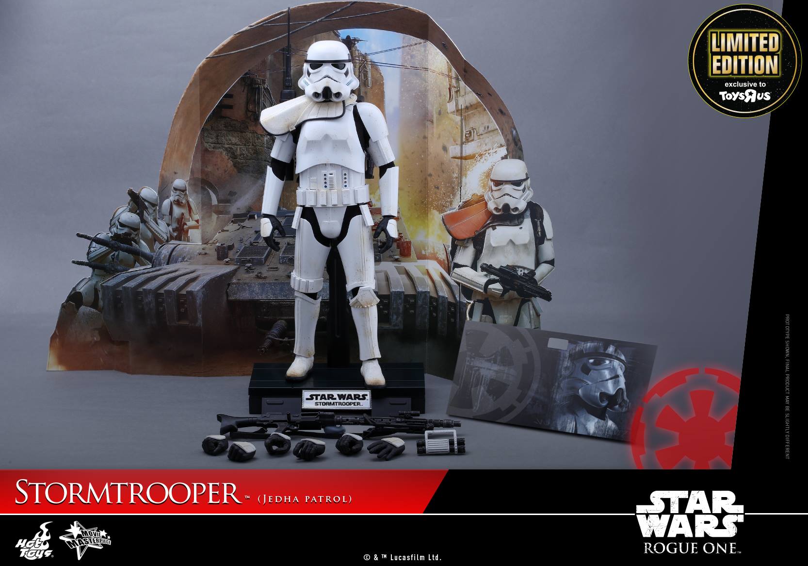 Today Hot Toys is very excited to officially present a Toys”R”us exclusive version of the new 1/6th scale Stormtrooper Jedha Patrol collectible figure only available in selected markets and celebrate #GoRogueAtToysRUs!