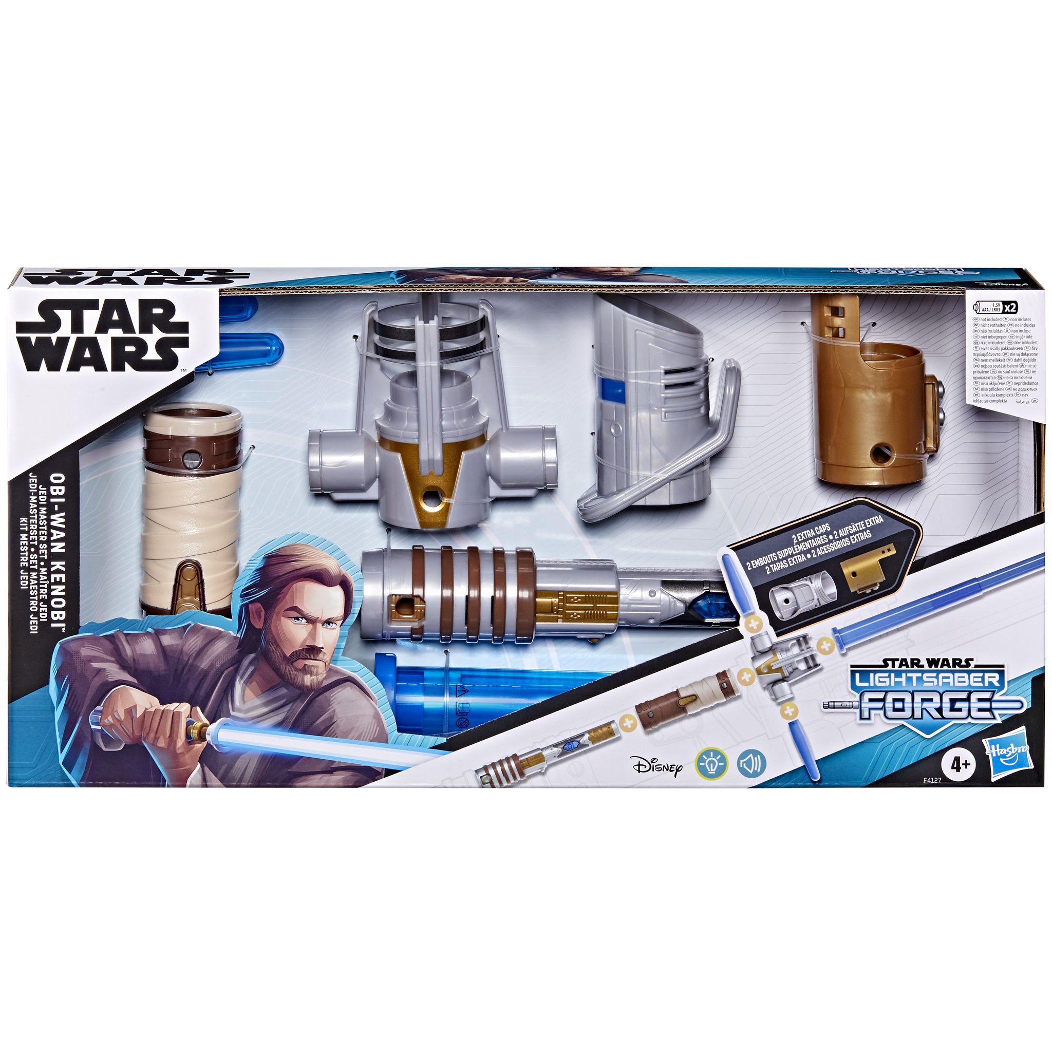 Harness the power of the Force with the STAR WARS LIGHTSABER FORGE OBI-WAN KENOBI JEDI MASTER SET, featuring character-inspired design and deco. This electronic lightsaber set features 8 parts – the blade, cap, cover, core, extra cap, extra cross-guard cap and 2 mini-blades.