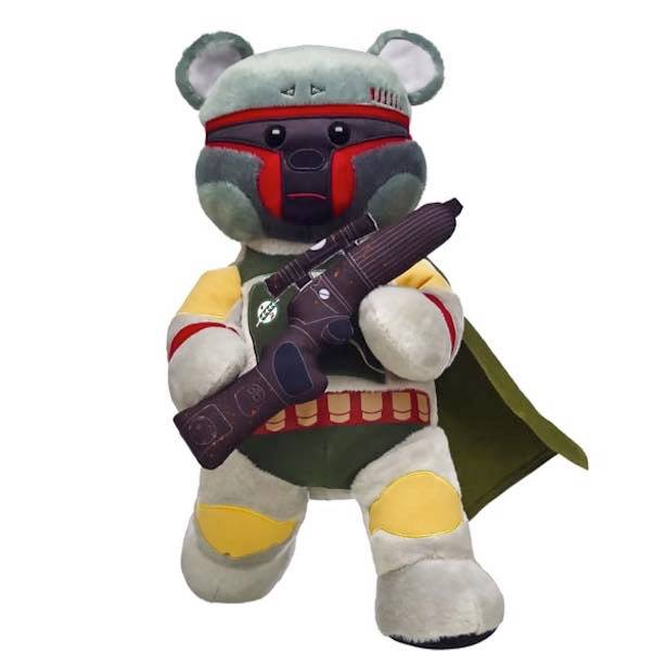 Build-A-Bear Workshop has announced a brand new Star Wars themed bear! Check out the Boba Fett Build-A-Bear below! This new bear comes complete with a Boba Fett style weapon. As you can see, he is different from traditional bears, as the bear itself is the Fett costume. Typically the bear will be standard, and you would add the Boba Fett costume.
