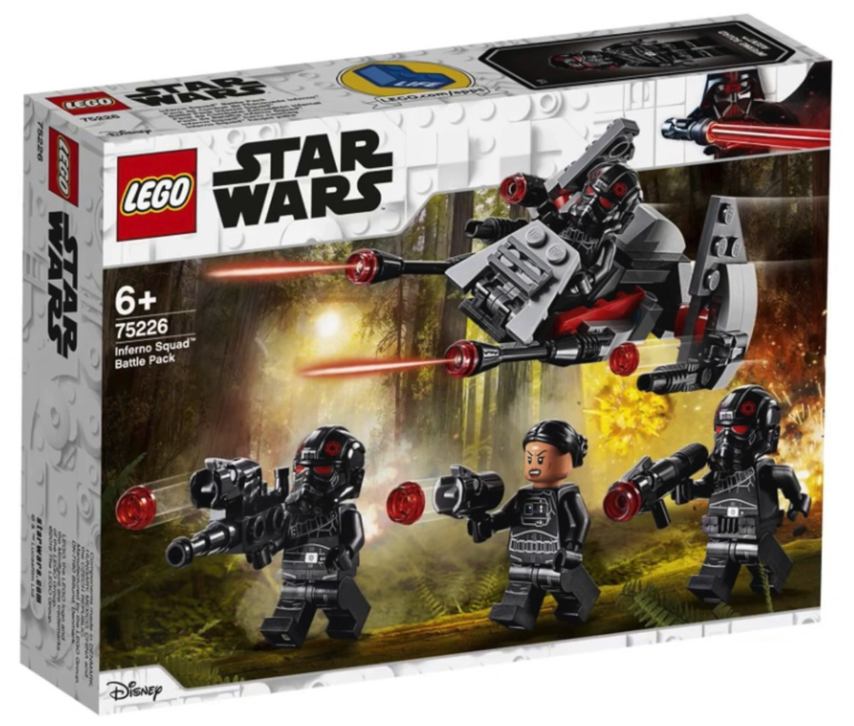 - Inferno Squad Battle Pack (#75226) — includes four Imperial commandos that form Inferno Squad in Battlefront II video game and novel; 118 pieces for $14.99.