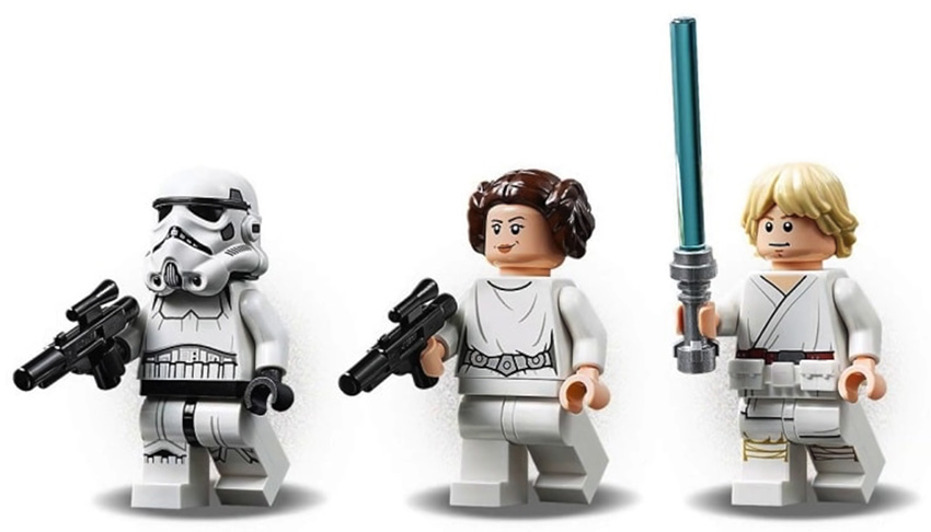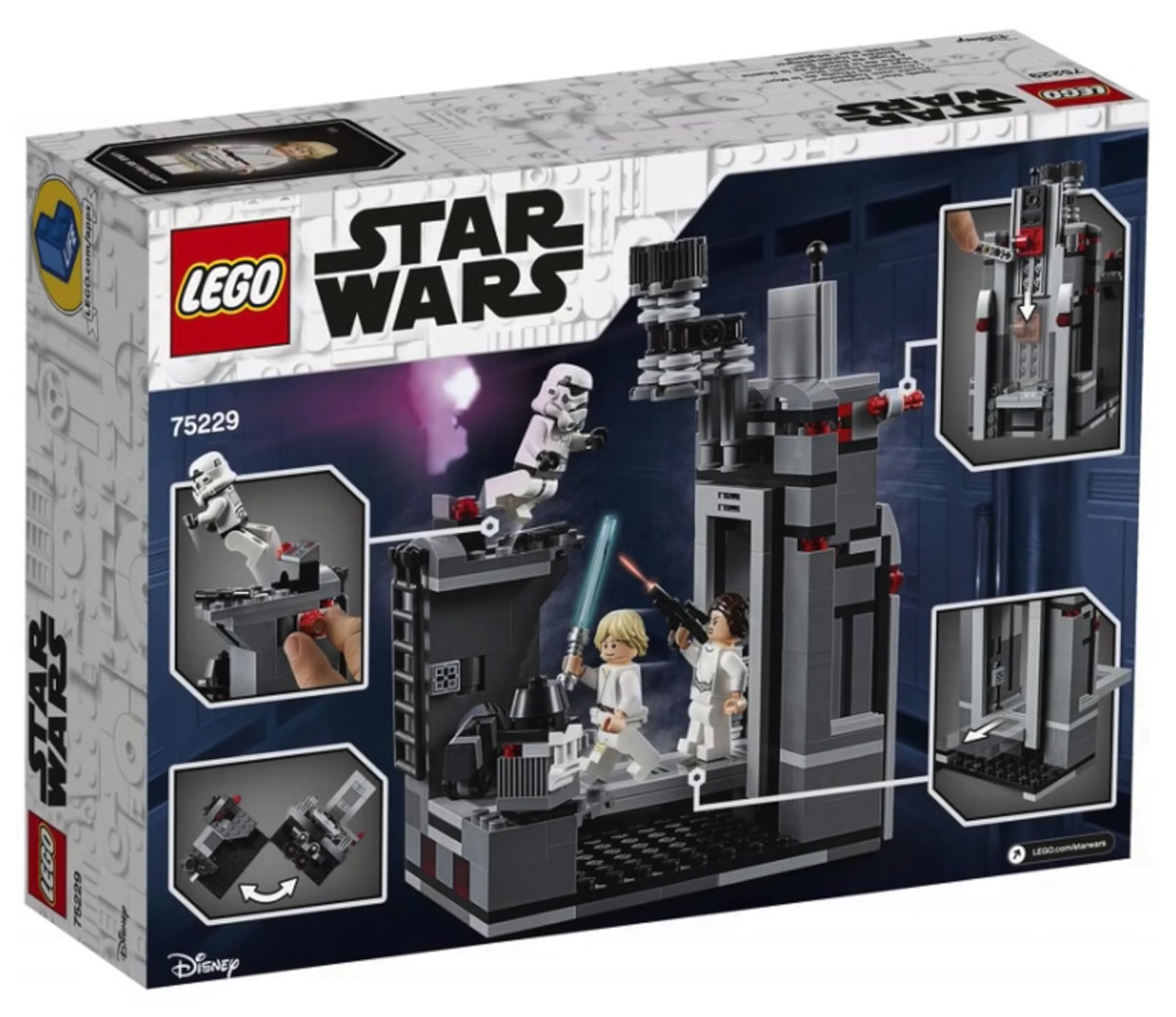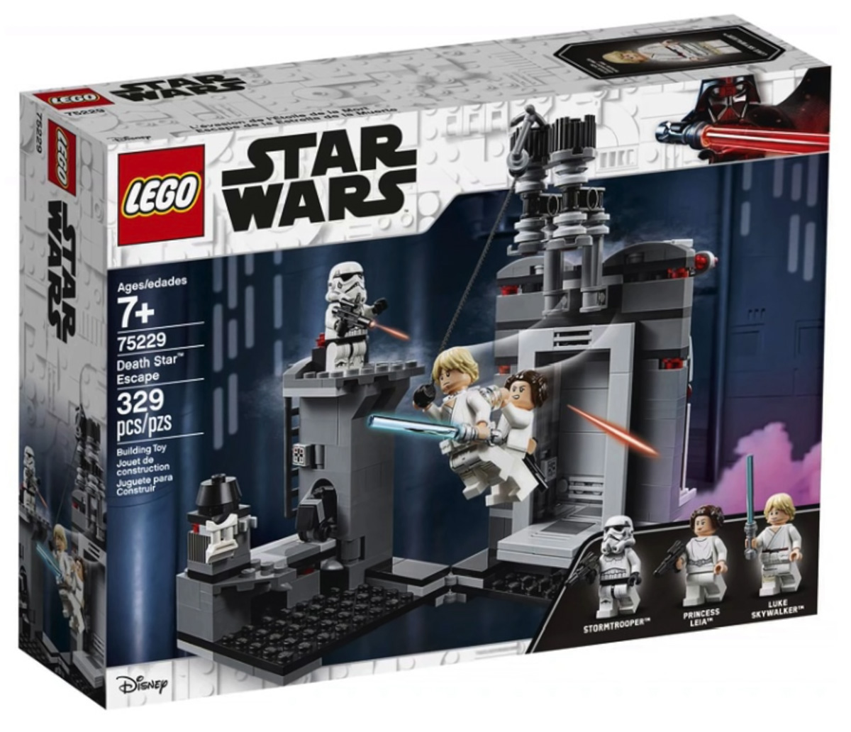 - Death Star Escape (#75229) — includes Death Star section with fold out play-set allowing you to recreate the escape from Star Wars: A New Hope, comes with three minifigures of Luke Skywalker, Princess Leia, Stormtrooper (with new helmet) and brick built Death Star Droid. Leia is able to join onto Luke’s back to swing the chasm. 329 pieces.