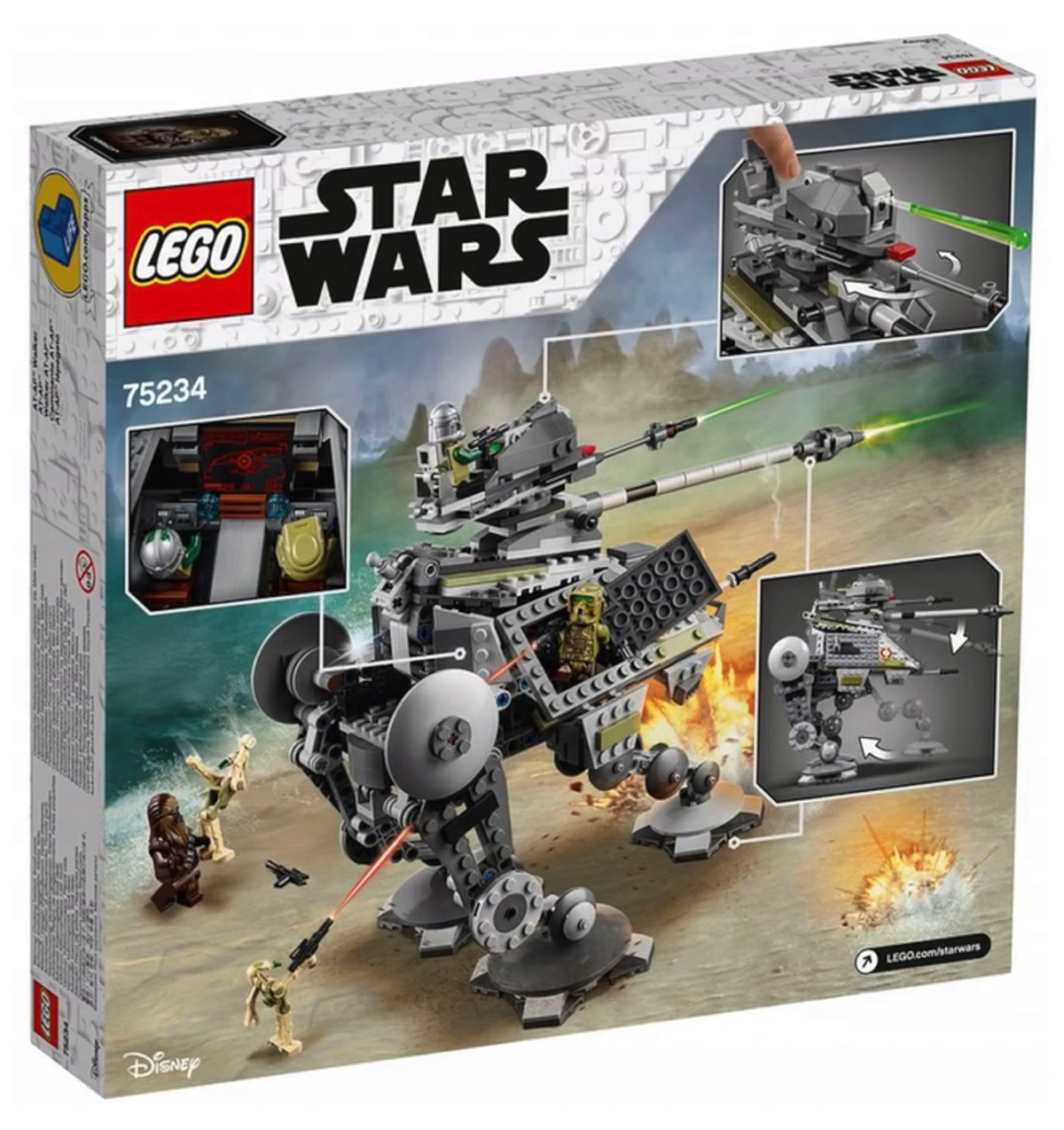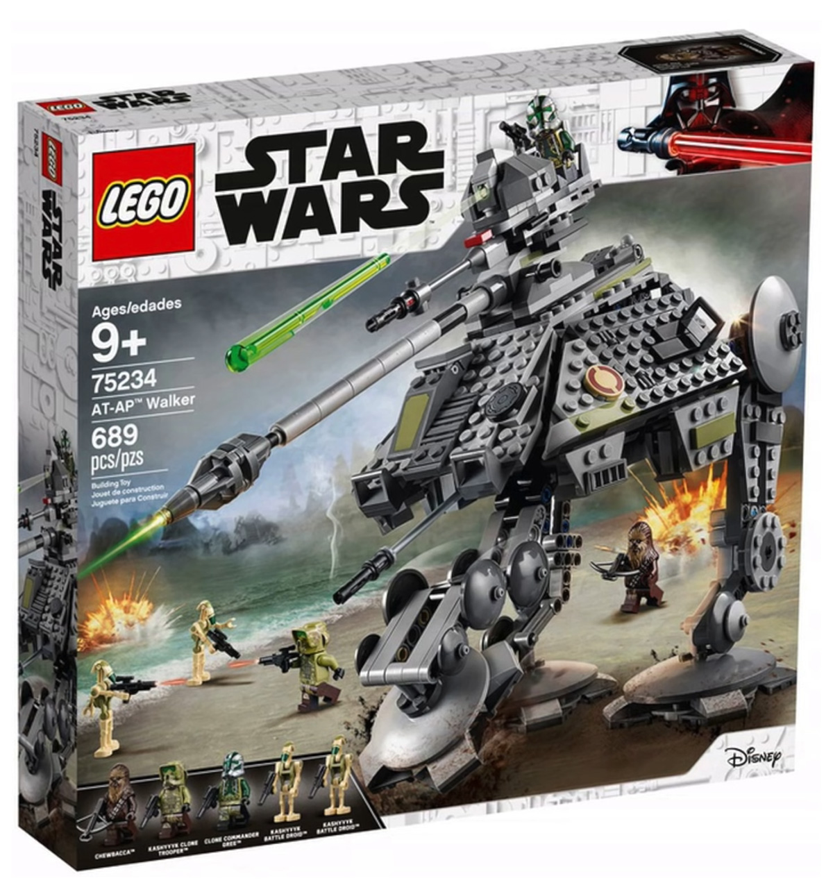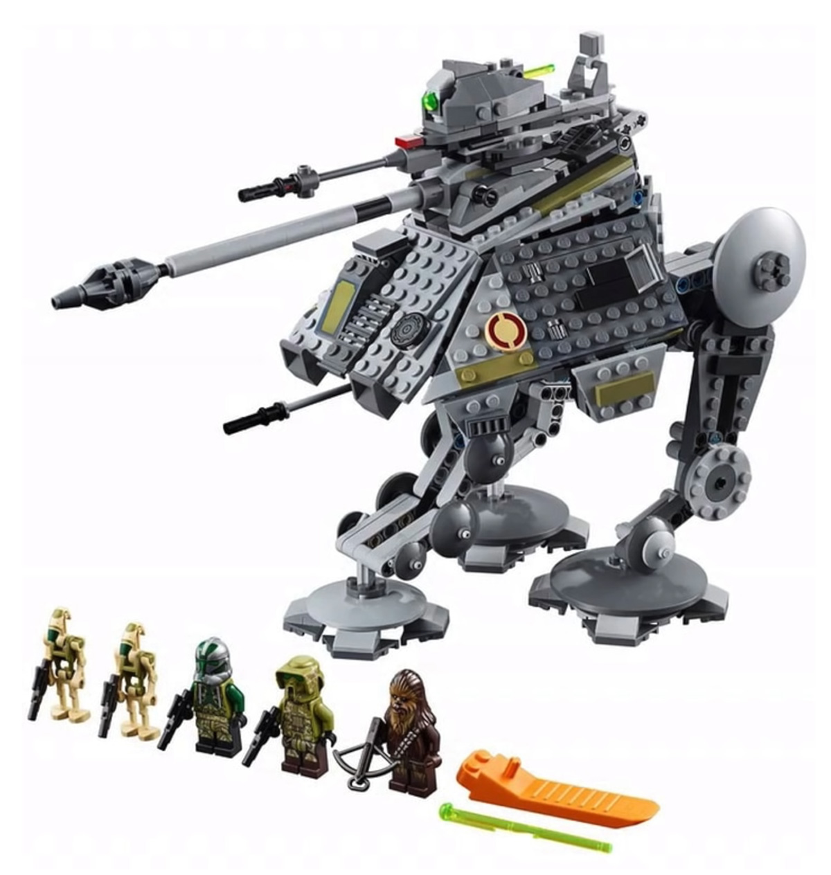 - AT-AP Walker (#75234) — includes AT-AP walker with articulated legs/retractable third leg and five minifigures of Clone Commander Gree, Chewbacca, Kashyyyk Clone Trooper & two new Kashyyyk decorated Battle Droids; 689 pieces.