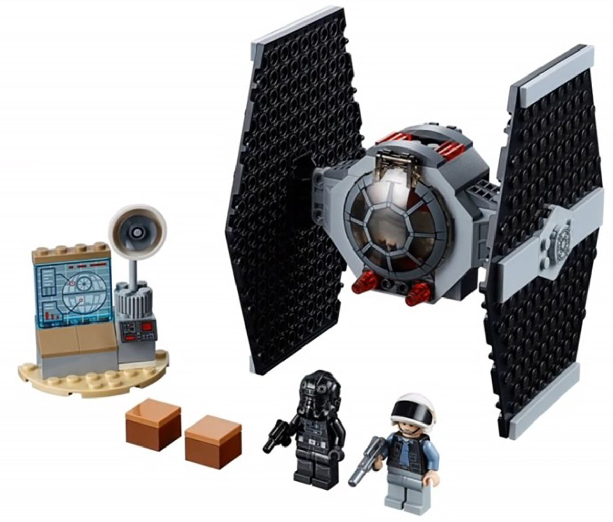 - TIE Fighter Attack (#75237) — TIE Fighter with two minifigures, TIE Fighter Pilot and Rebel Fleet Trooper; 77 pieces for $19.99.