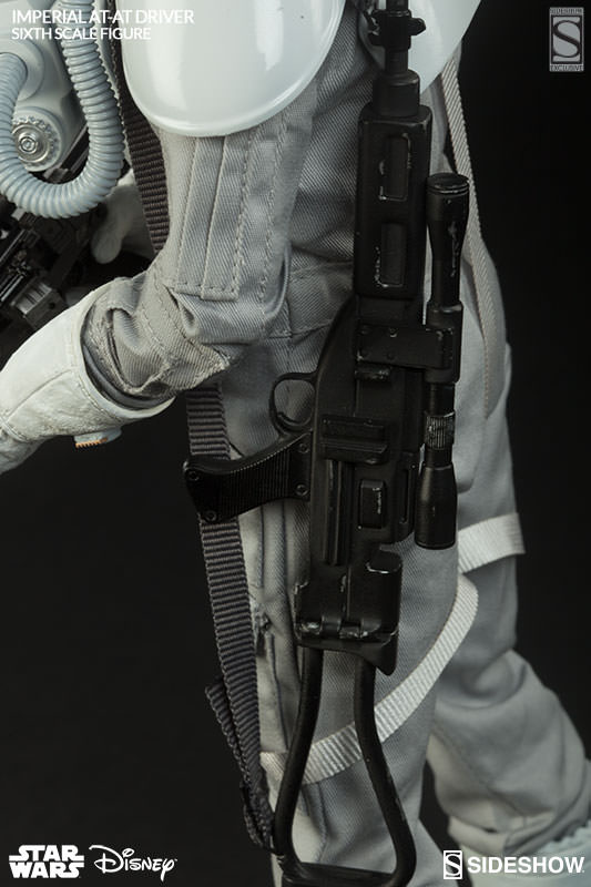 Although typically found in the cockpit, Sideshow’s Exclusive Imperial AT-AT driver also comes armed with a vintage inspired rifle blaster (shown below) – a nostalgic feature Star Wars collectors are sure to enjoy.