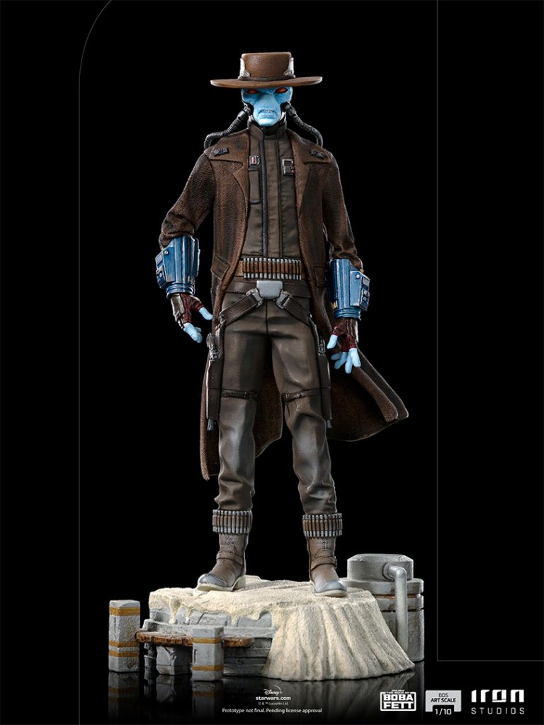 Walking on the scorching sands of the barren desert from planet Tatooine, at the gates of the city of Freetown, just like an American Old West gunslinger, a sinister and slender figure with cruel red eyes under his characteristic wide-brimmed fedora, wearing a brown overcoat, positions his skillful and fast hands, ready to draw his twin blaster pistols LL-30 from his belt holster, challenging the local sheriff Cobb Vanth for a duel. In the month of May, commemorating the Star Wars saga, Iron Studios proudly present their statue “Cad Bane – The Book of Boba Fett – Art Scale 1/10”, with the relentless mercenary and bounty hunter inspired by the iconic scene from the sixth episode of the series from the Disney+ streaming service “The Book of Boba Fett”, series derivative from “The Mandalorian” from the universe of Star Wars, where the character made its live-action premiere.