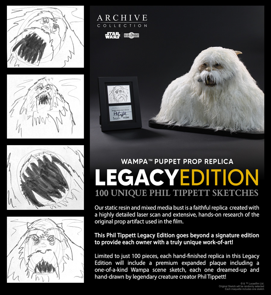 Limited to just 100 pieces, each replica in the Legacy Edition will include a premium expanded plaque including a one-of-a-kind Wampa scene sketch hand-drawn by Tippett!