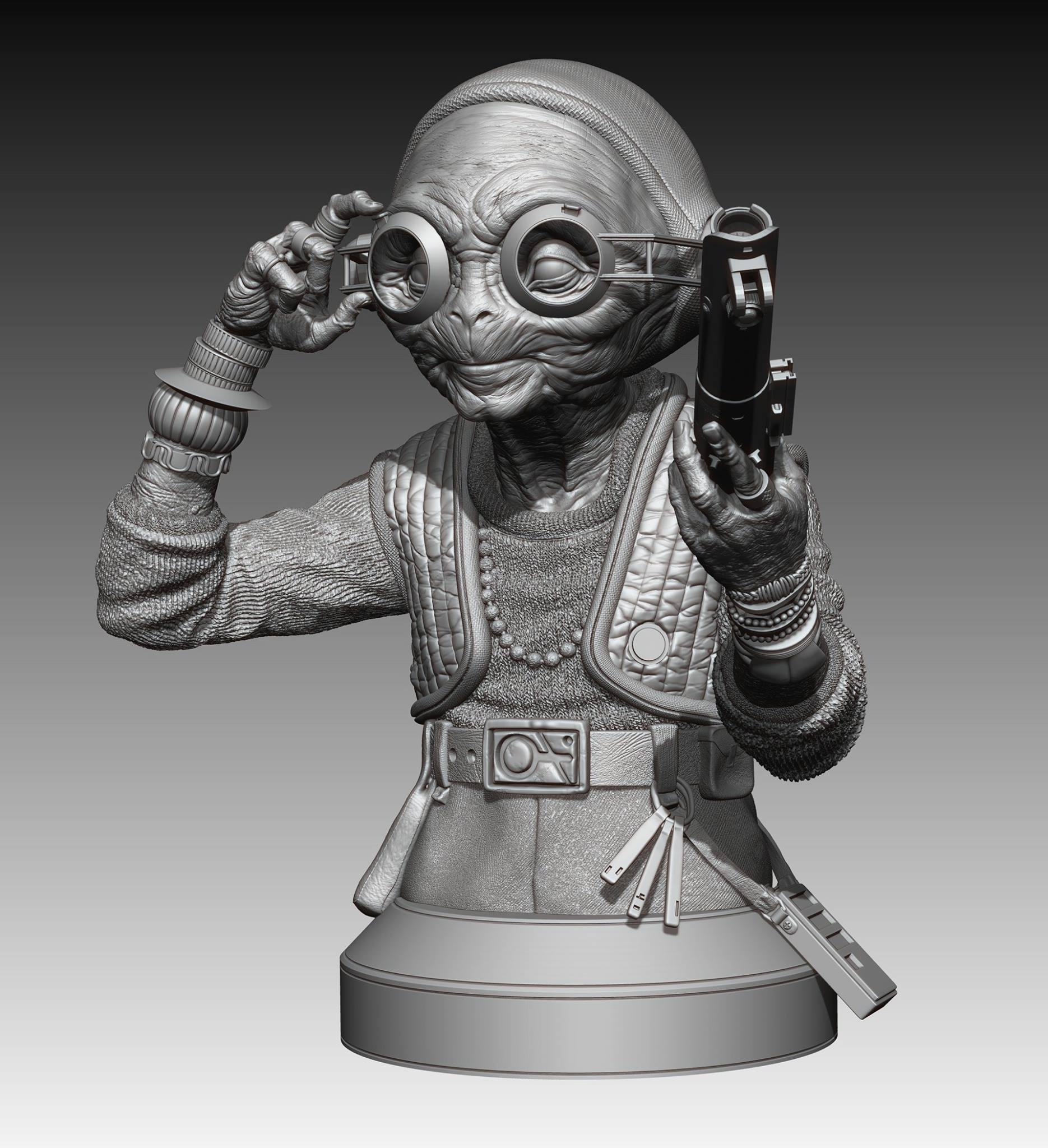 Sometimes it’s fun to look at the original sculpts of some of your favorite Star Wars collectibles. It gives you an idea of what goes into making these things that we as collectors hold dear. Recently the sculptor of the Gentle Giant Maz Kanata Bust, Keith Kopinski, released his digital sculpt photos for the piece.