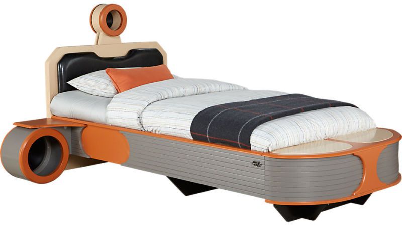 Next is the Star Wars Landspeeder orange twin panel bed. This bed comes with left and right engine storage night tables. Those tables would be perfect for storing power convertors picked up at Tosche Station (too much…?) This bed will set you back a cool $900.
