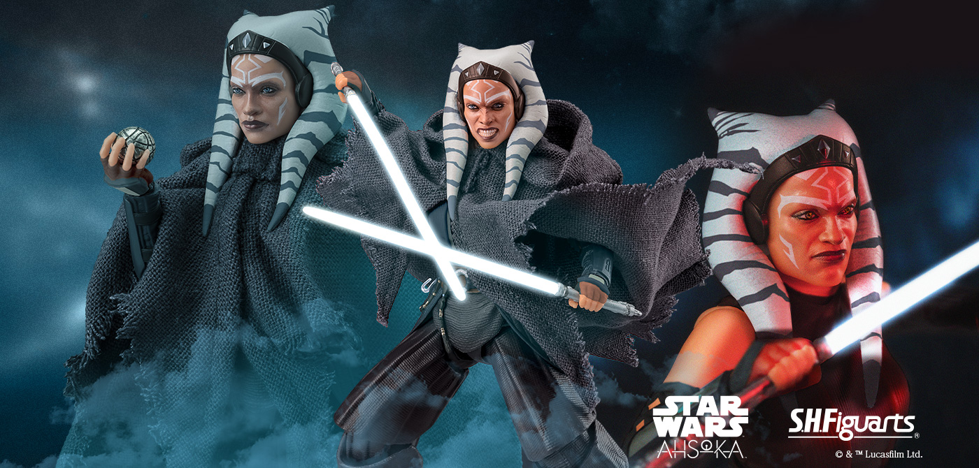 Tamashii Nations has listed a brand new product page on their site for the upcoming Star Wars: Ahsoka – S.H. Figuarts Ahsoka Tano Figure. Ashoka stands around 5.9″ tall, and includes a fabric cloak, lightsabers, effects for the lightsabers, interchangeable faces, an a regular and damaged sphere map.
