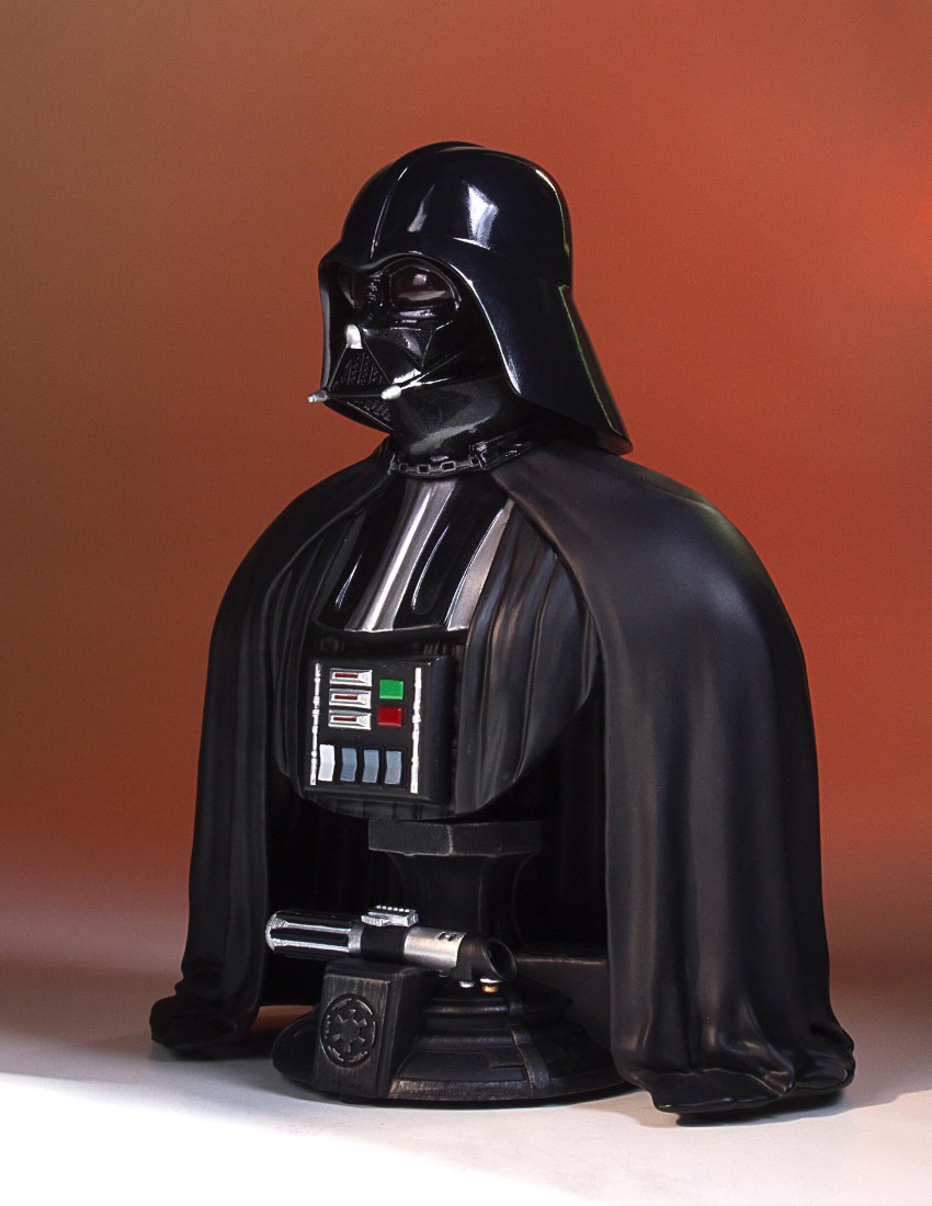 Once a powerful Jedi Knight, Darth Vader was consumed by the Dark Side of the Force to become a dreaded Sith Lord of the Galactic Empire. Enforcing the evil will of the Emperor, Vader seeks to crush the Rebellion. Lord Vader is so determined to thwart the Rebel forces that he eventually takes to his own custom T.I.E. Fighter to join the fight and defeat the Rebel’s ragtag fleet. Depicted as he appears in Star Wars Episode VI: A New Hope, the Gentle Giant Ltd. 1:6th scale Darth Vader Classic Bust combines the timeless aesthetics of sculpture from Greek and Roman antiquity, with one of popular cultures most recognizable characters. Added to the base is Darth Vader’s iconic lightsaber hilt, the preferred weapon of the Sith. Each limited edition hand-painted polyresin bust comes individually numbered and is paired with a matching special edition certificate of authenticity done by artist Brian Rood.