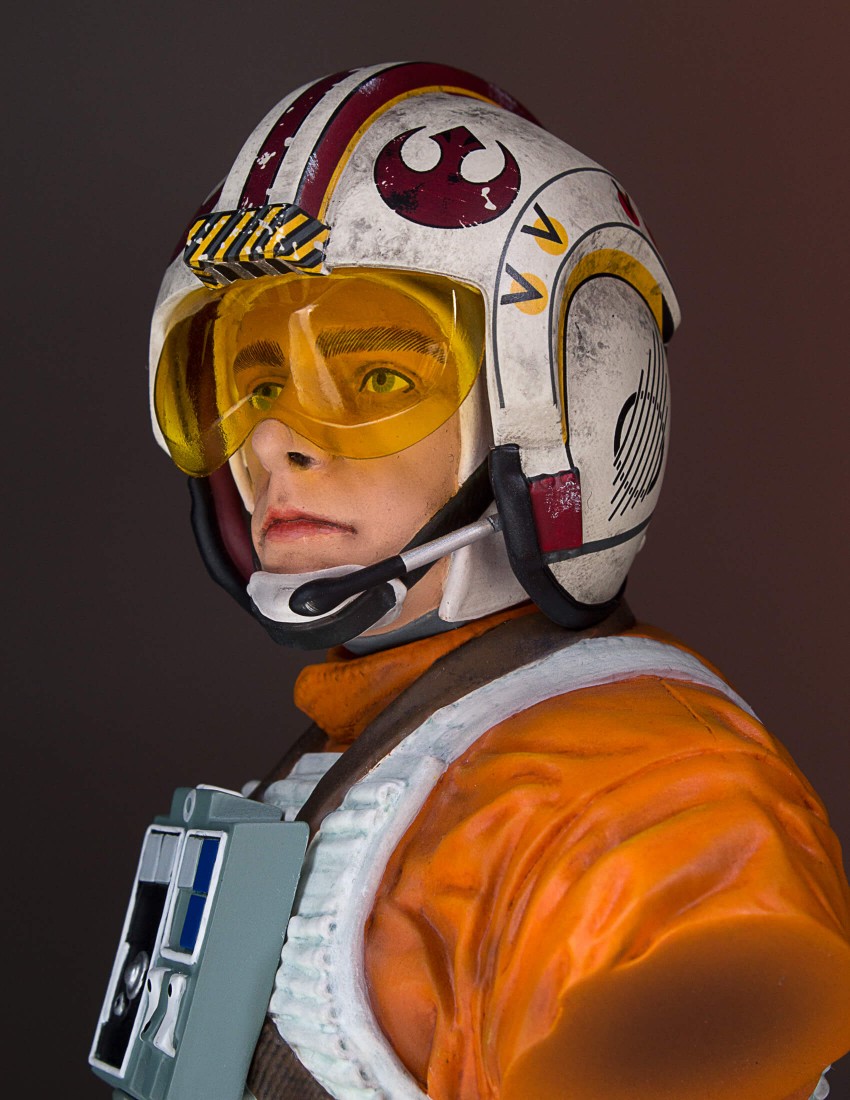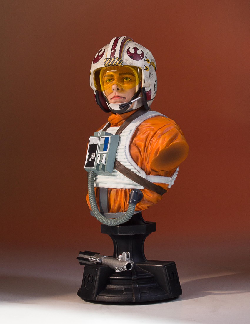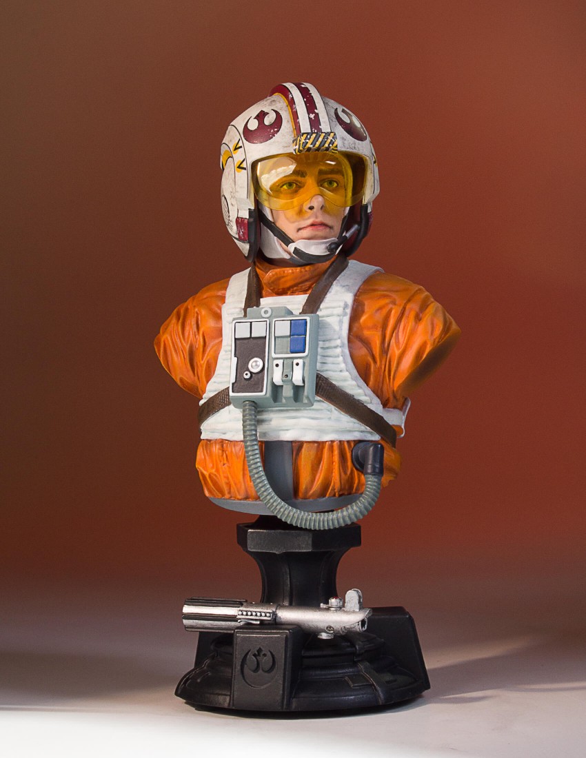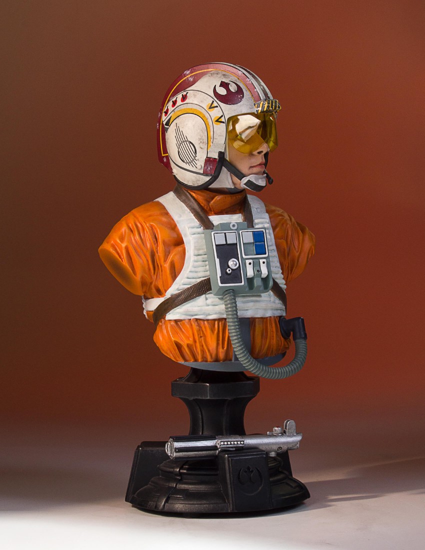 From farm boy to Red 5. 40 years ago Star Wars: A New Hope took us all on a journey alongside Luke Skywalker and his friends as they made a daring rescue to save a princess and the galaxy. Young Luke Skywalker joins the rebellion as a pilot on their mission to destroy the ominous and deadly Death Star. Luke exhibits his father’s natural prowess as a pilot and uses the Force to save the day. Depicted as he appears in Star Wars Episode VI: A New Hope, the Gentle Giant Ltd. 1:6th scale Luke Skywalker Classic Bust combines the timeless aesthetics of sculpture from Greek and Roman antiquity, with one of popular cultures most recognizable characters. Added to the base of this special edition bust is Luke’s lightsaber, given to him earlier in the film by his master, mentor and friend Obi-Wan Kenobi. Each limited edition hand-painted polyresin bust comes individually numbered and is paired with a matching special edition certificate of authenticity done by artist Brian Rood.