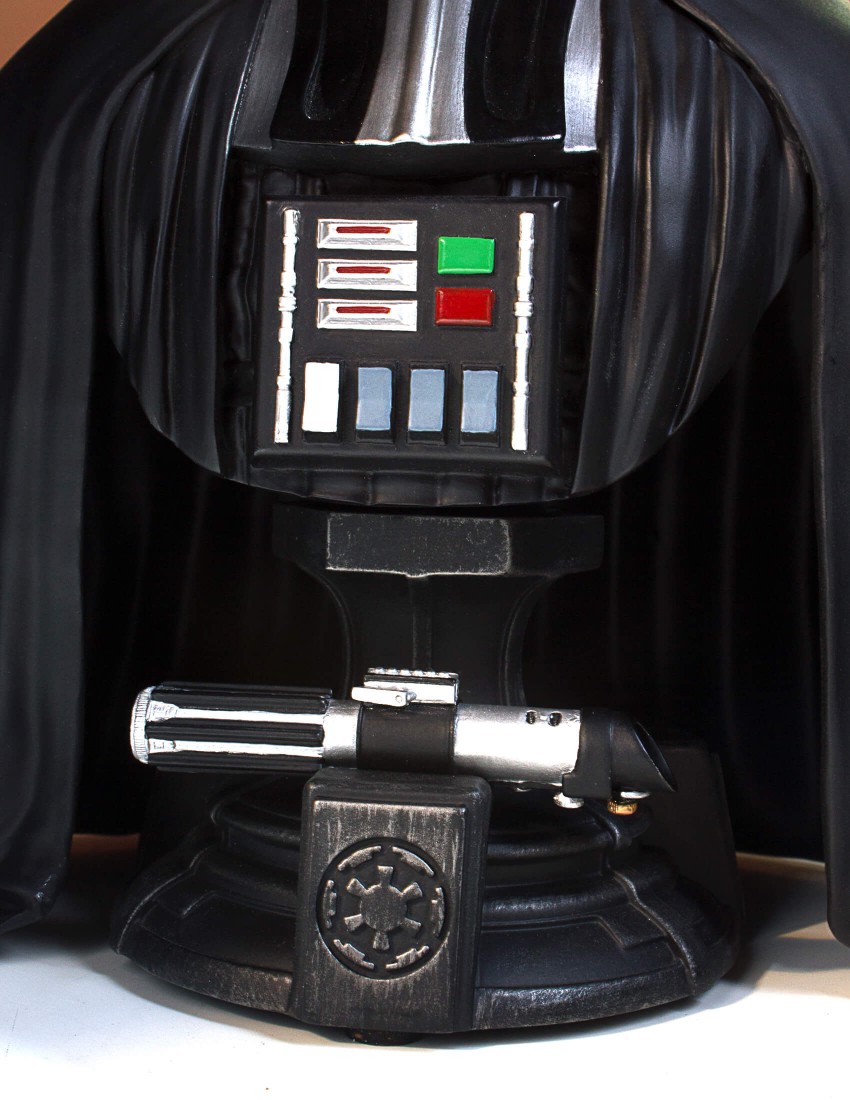 Once a powerful Jedi Knight, Darth Vader was consumed by the Dark Side of the Force to become a dreaded Sith Lord of the Galactic Empire. Enforcing the evil will of the Emperor, Vader seeks to crush the Rebellion. Lord Vader is so determined to thwart the Rebel forces that he eventually takes to his own custom T.I.E. Fighter to join the fight and defeat the Rebel’s ragtag fleet. Depicted as he appears in Star Wars Episode VI: A New Hope, the Gentle Giant Ltd. 1:6th scale Darth Vader Classic Bust combines the timeless aesthetics of sculpture from Greek and Roman antiquity, with one of popular cultures most recognizable characters. Added to the base is Darth Vader’s iconic lightsaber hilt, the preferred weapon of the Sith. Each limited edition hand-painted polyresin bust comes individually numbered and is paired with a matching special edition certificate of authenticity done by artist Brian Rood.