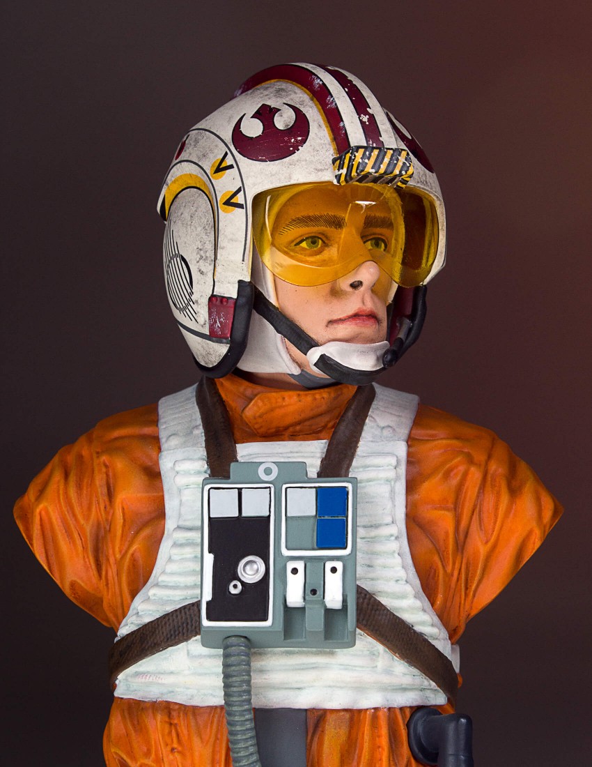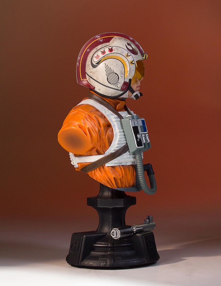 From farm boy to Red 5. 40 years ago Star Wars: A New Hope took us all on a journey alongside Luke Skywalker and his friends as they made a daring rescue to save a princess and the galaxy. Young Luke Skywalker joins the rebellion as a pilot on their mission to destroy the ominous and deadly Death Star. Luke exhibits his father’s natural prowess as a pilot and uses the Force to save the day. Depicted as he appears in Star Wars Episode VI: A New Hope, the Gentle Giant Ltd. 1:6th scale Luke Skywalker Classic Bust combines the timeless aesthetics of sculpture from Greek and Roman antiquity, with one of popular cultures most recognizable characters. Added to the base of this special edition bust is Luke’s lightsaber, given to him earlier in the film by his master, mentor and friend Obi-Wan Kenobi. Each limited edition hand-painted polyresin bust comes individually numbered and is paired with a matching special edition certificate of authenticity done by artist Brian Rood.