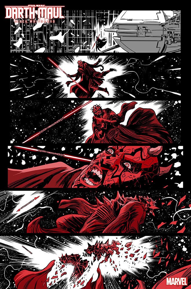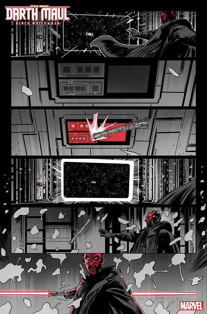 Back in January, Marvel released a solicitation for the upcoming comic Darth Maul – Black, White & Red #1, and only a couple of months later, we are getting our first look at interiors from the book.
