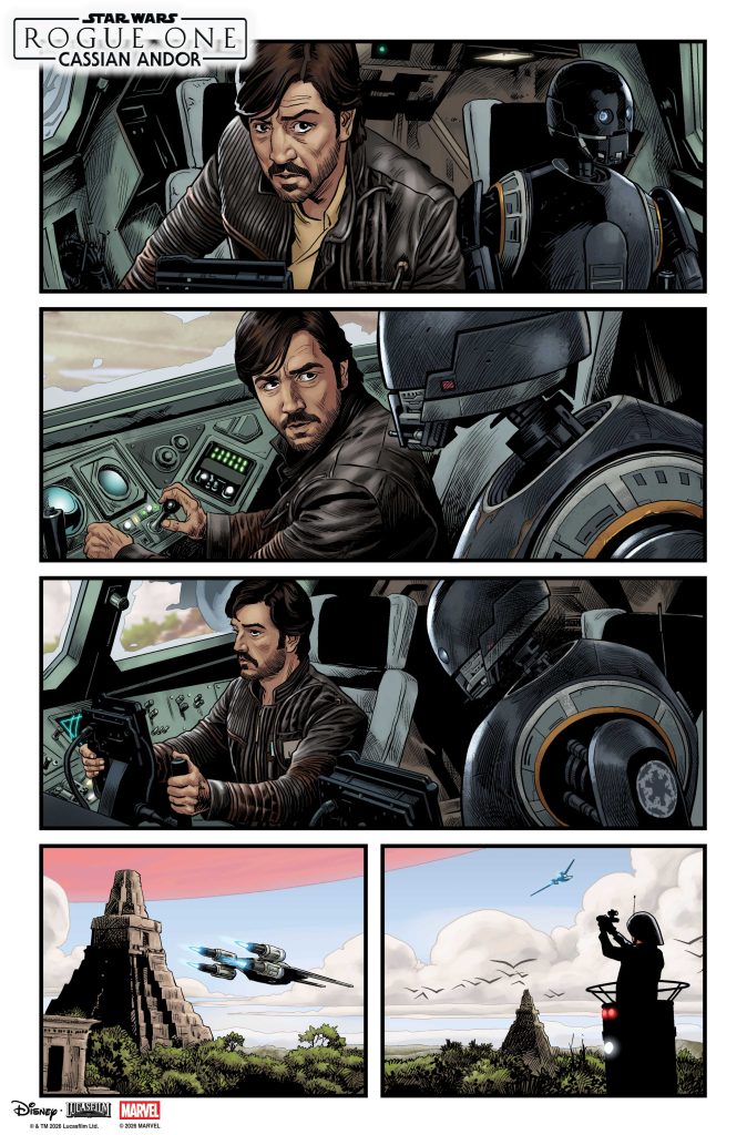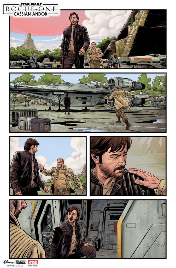 New York, NY— April 2, 2026 — Ten years ago, Rogue One: A Star Wars Story introduced the group of unlikely heroes who stole the plans to the original Death Star and set the stage for the Rebellion’s greatest victory. Announced in February, Marvel Comics will celebrate the anniversary of the beloved film by publishing five one-shots spotlighting its key characters, starting in May with Cassian Andor, who went on to headline the film’s Emmy and Peabody Award-winning Disney+ prequel series, Andor. Returning to the grit and glory of a Rebellion on the brink of war, the all-new stories will be set just prior to the events of the film, revealing never-before-told backstories and adventures from this pivotal era. Today, fans can see David Marquez’s covers for all five one-shots and a special sneak peek at STAR WARS: ROGUE ONE – CASSIAN ANDOR #1 by Benjamin Percy and Luke Ross, hitting stands on May 6.