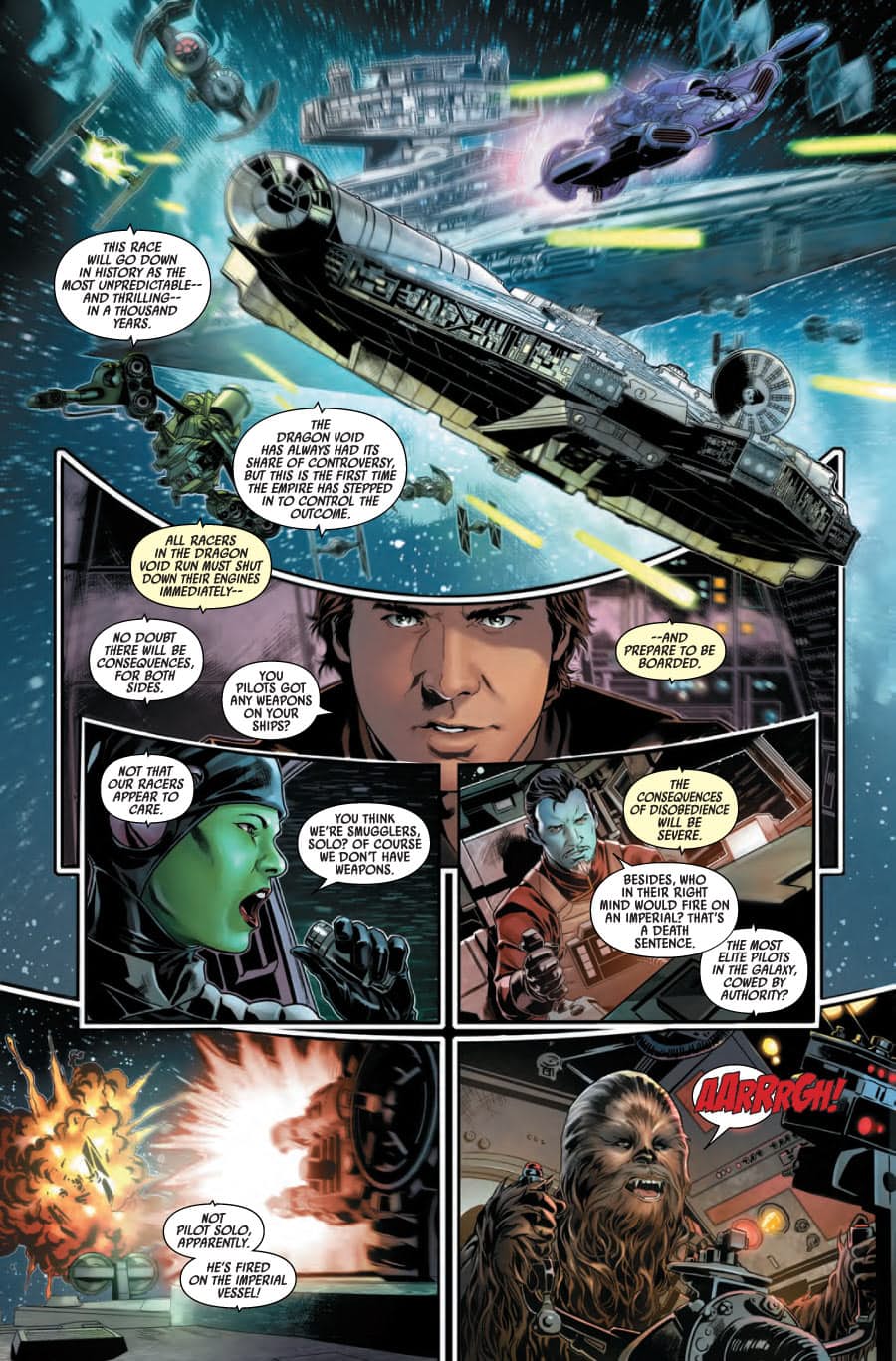 This is it — the dramatic conclusion to the Dragon Void race! Will Han take the trophy? Or be left with the space junk? Our favorite scoundrel’s first miniseries comes to a photo finish!