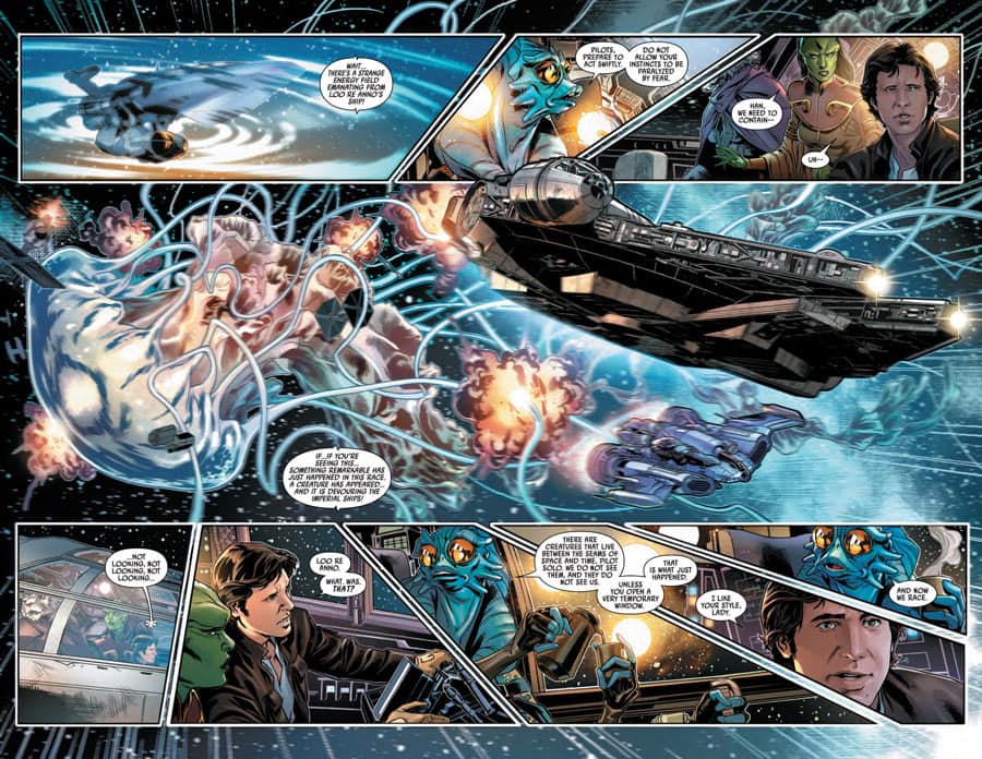This is it — the dramatic conclusion to the Dragon Void race! Will Han take the trophy? Or be left with the space junk? Our favorite scoundrel’s first miniseries comes to a photo finish!