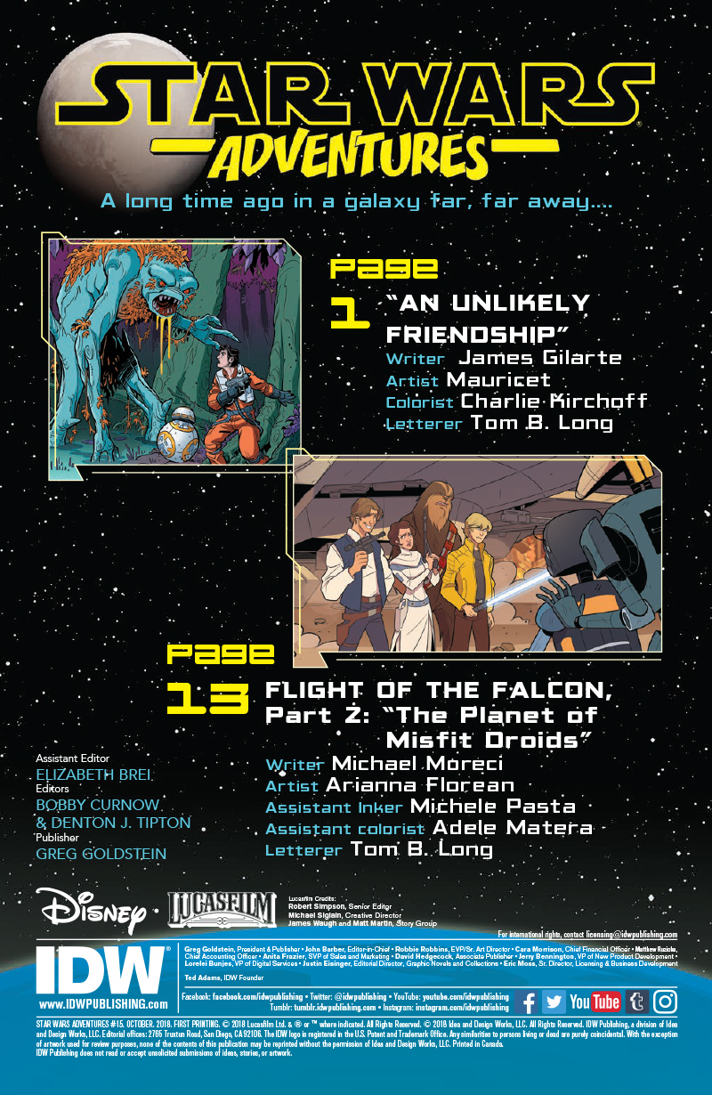 IDW Publishing has released a 7-page Star Wars Adventures 15 preview. Check out a short synopsis and several pages from the book that hits stores next week!