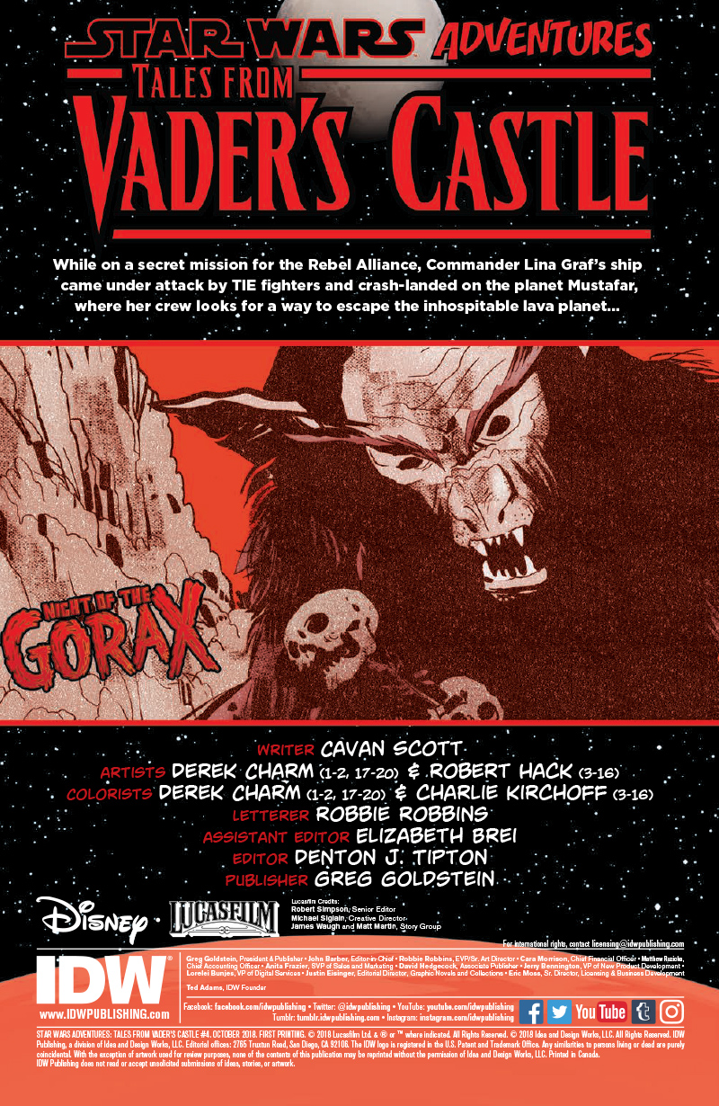 IDW Publishing has released a 7-page Star Wars Adventures: Tales from Vader’s Castle 4 preview. Check out a short synopsis and several pages from the book that hits stores next week!