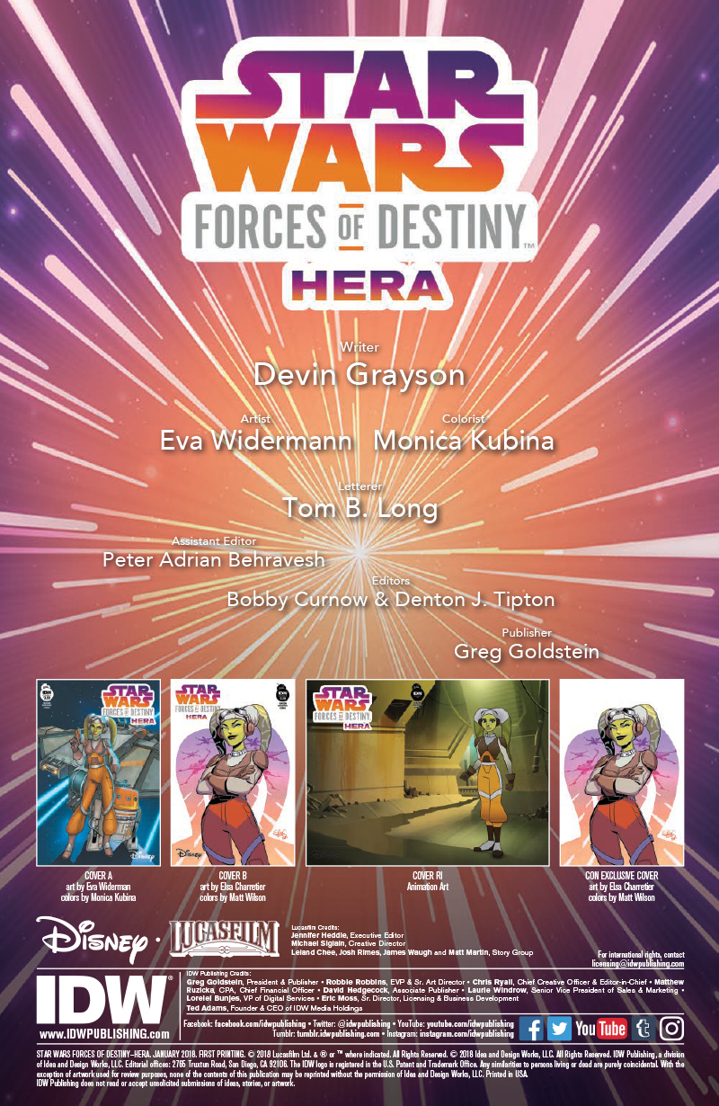 IDW Publishing has released a 7-page Star Wars: Forces of Destiny – Hera preview. Check out a short synopsis and several pages from the book that hits stores next week!