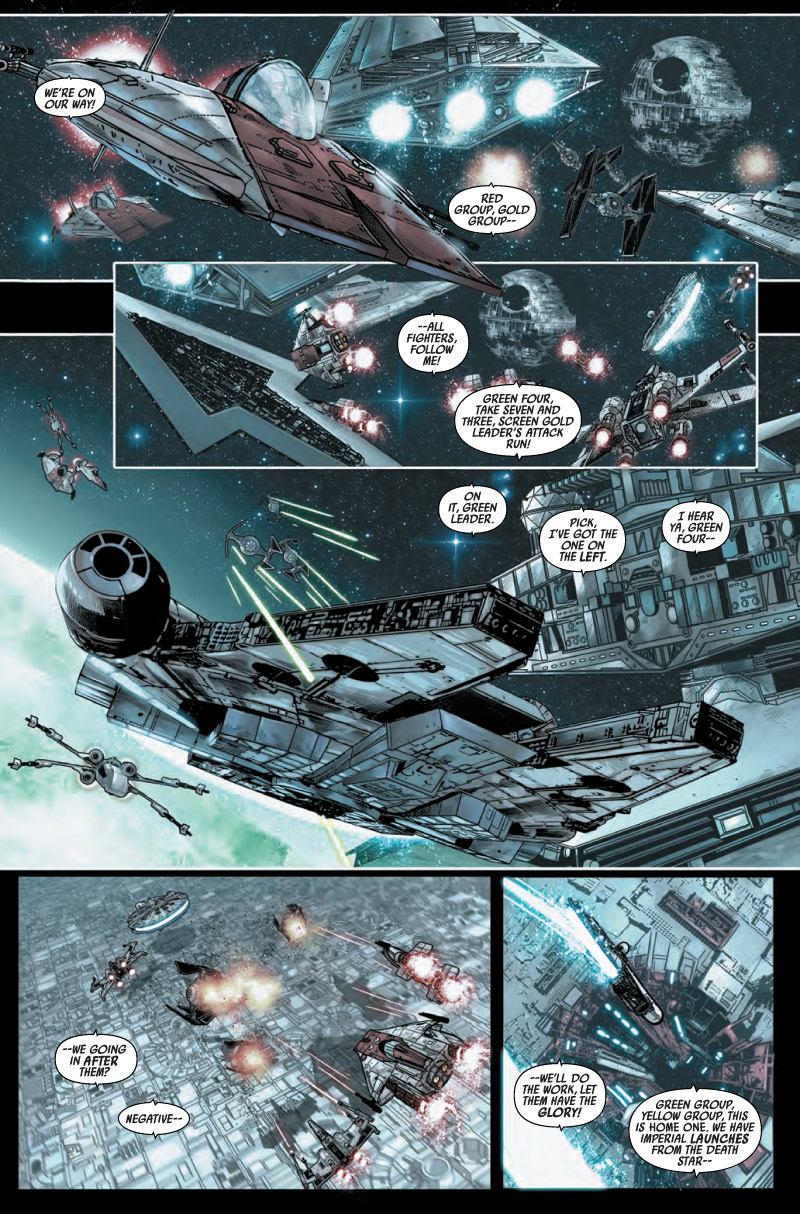 For the first time in the new Star Wars canon, journey with us into the time after the end of Return of the Jedi! Writer Greg Rucka (PUNISHER, WOLVERINE, Gotham Central) and artist Marco Checchetto (AVENGERS WORLD, PUNISHER) take us past the destruction of the second Death Star into the chaos of a Shattered Empire. Star Wars © Lucasfilm Ltd. & TM. All rights reserved. Used under authorization. Text and illustrations for Star Wars are © 2015 Lucasfilm Ltd.