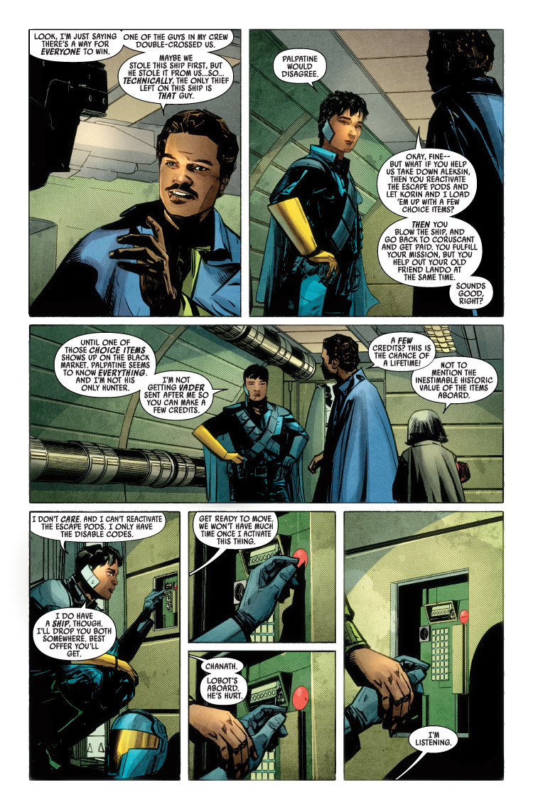 It began as the heist of a lifetime…now it’s a fight to survive! When Lando and Lobot took this gig, it seemed like an easy payday… But with this conclusion, they will never be the same. Star Wars © Lucasfilm Ltd. & TM. All rights reserved. Used under authorization. Text and illustrations for Star Wars are © 2015 Lucasfilm Ltd.