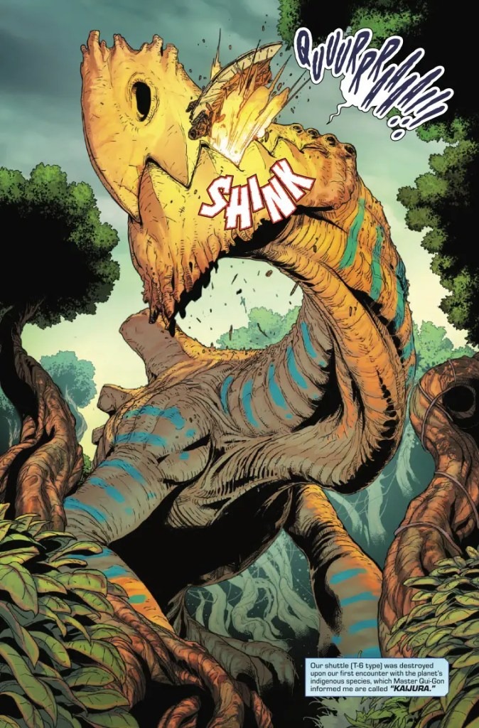 The most unusual Jedi Knights tale ever told! QUI-GON and OBI-WAN defy death in an epic attempt to save the life of SENATOR BAIL ORGANA on a planet full of skyscraper-sized monsters!
