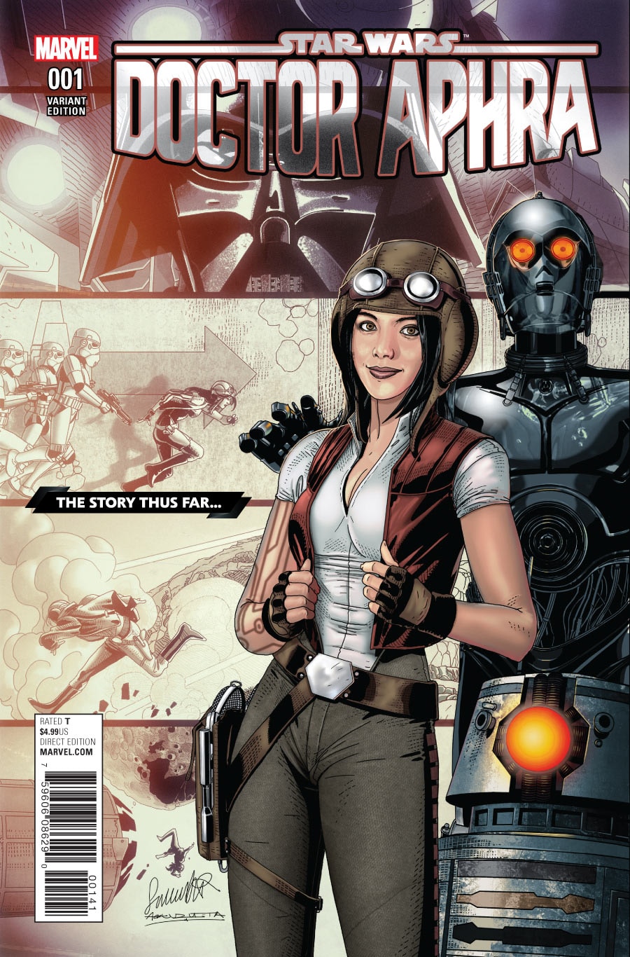 BECAUSE YOU DEMANDED IT! Following the blockbuster finale of Darth Vader #25, the fan-favorite character begins a new journey in STAR WARS: DOCTOR APHRA #1 – the new ongoing series coming this December! From superstar writer Kieron Gillen (Darth Vader) and fan-favorite artist Kev Walker (Marvel Zombies) comes Marvel’s first ongoing series starring an original character created in the comics! Following her time in the clutches of Darth Vader, Doctor Aphra has barely escaped with her life. If he ever learns of her survival, he’ll hunt her to the ends of the galaxy. But for now, it’s time for a return to what she does best. With the droids 0-0-0 and BT-1 in tow, she’s off in search of rare artifacts from the galactic center to the Outer Rim and everywhere in between. Aphra’s got debts to pay after all. Just as long as she can stay one step ahead of the Empire, some Bounty Hunters and just about everyone else in the galaxy!