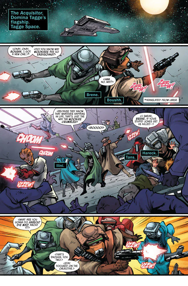 Boushh and his Ubese crew masquerade as members of Crimson Dawn to free the Tagge Corporation leader.