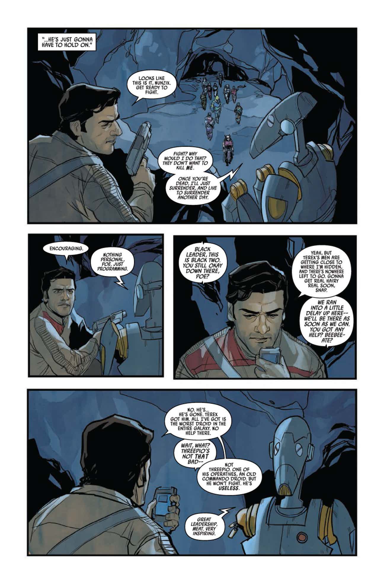 It’s Terex’s army versus Black Squadron – and Black Squadron is outnumbered! Plus, Poe is stranded with only a battle-reluctant commando droid between him and his enemies. Snap Wexley may have a trick or two up his sleeve to help Black Leader fight!