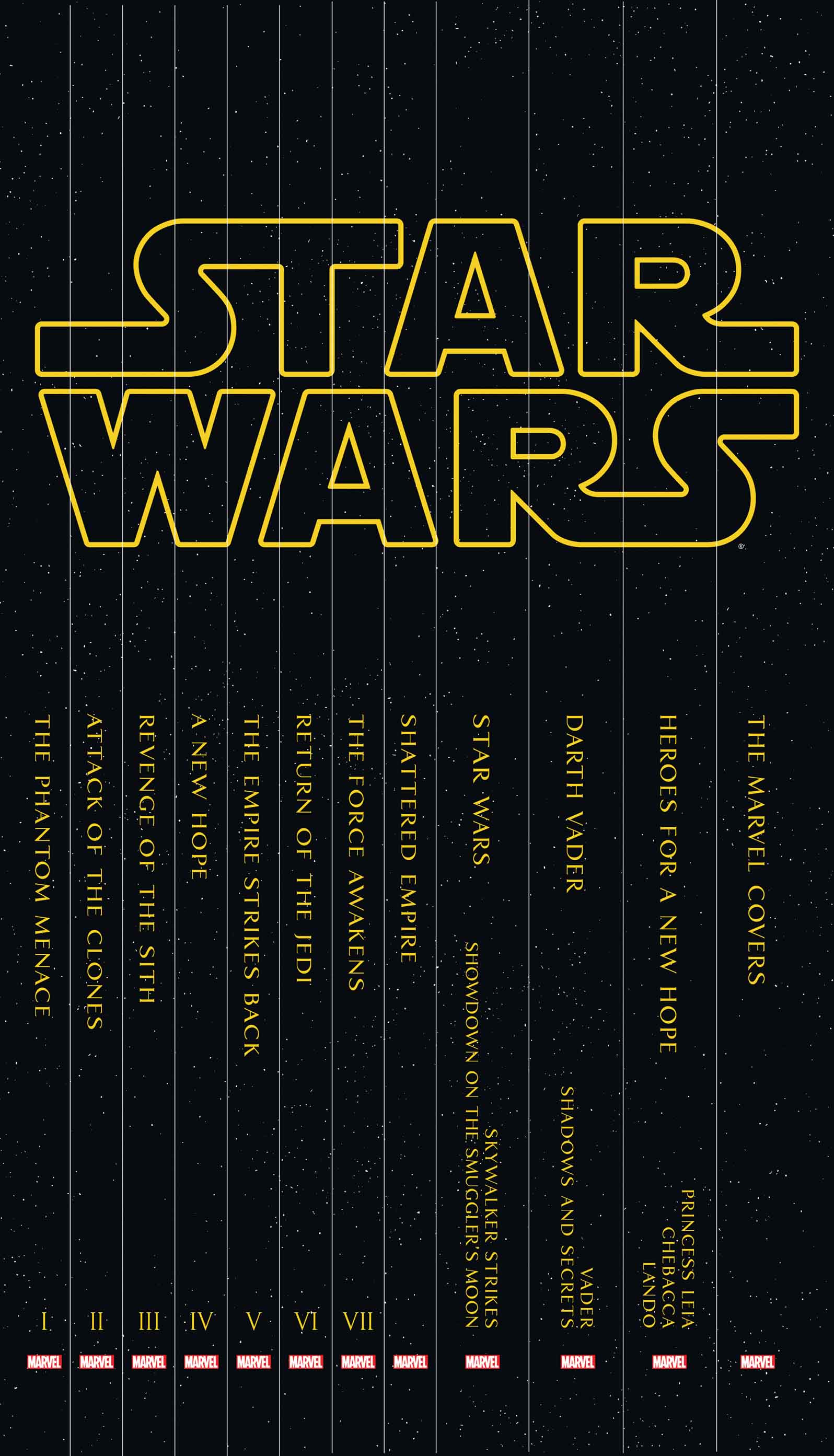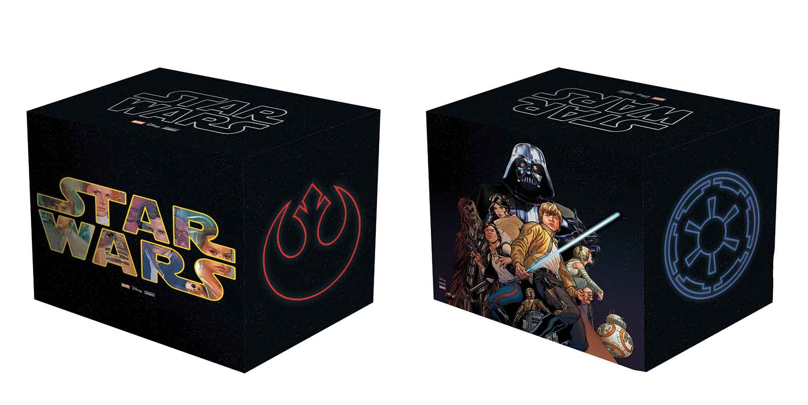 Celebrate Star Wars with a box set that you’ll need to be Force-strong to lift! Enjoy adaptations of every film in the series so far, plus a prelude to The Force Awakens. Follow Luke Skywalker and his fellow rebels into all-new adventures with the first collection of Marvel’s best-selling new Star Wars series, and turn to the dark side with Darth Vader’s own debut volume! Then savor a stunning gallery of Star Wars covers by Marvel’s greatest artists. It’s the ultimate celebration of cinema’s greatest sci-fi epic in comic-book form! Includes STAR WARS: EPISODE I — THE PHANTOM MENACE PREMIERE HC, STAR WARS: EPISODE II — ATTACK OF THE CLONES PREMIERE HC, STAR WARS: EPISODE III — REVENGE OF THE SITH PREMIERE HC, STAR WARS: EPISODE IV — A NEW HOPE PREMIERE HC, STAR WARS: EPISODE V — THE EMPIRE STRIKES BACK PREMIERE HC, STAR WARS: EPISODE VI — RETURN OF THE JEDI PREMIERE HC, STAR WARS: JOURNEY TO THE FORCE AWAKENS — SHATTERED EMPIRE PREMIERE HC, STAR WARS: THE FORCE AWAKENS ADAPTATION PREMIERE HC, STAR WARS VOL. 1 PREMIERE HC, STAR WARS: DARTH VADER VOL. 1 PREMIERE HC, STAR WARS: HEROES FOR A NEW HOPE PREMIERE HC, STAR WARS: THE MARVEL COVERS VOL. 1 PREMIERE HC and STAR WARS BOX SET POSTER.