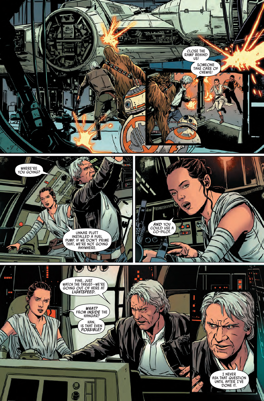 Rey and Finn escaped Jakku in the Millennium Falcon and teamed up with Han Solo and Chewbacca! But they’re not in the clear yet — there be RATHTARS! Meanwhile, Kylo Ren meets with the mysterious Supreme Leader Snoke! The search for Luke Skywalker continues!