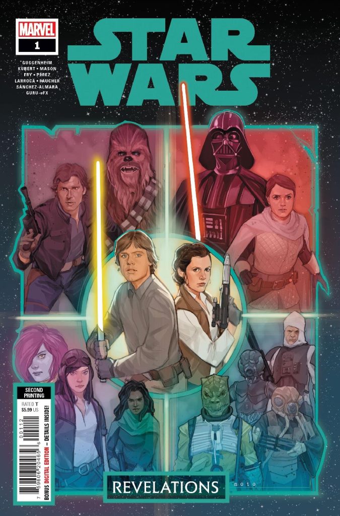 New York, NY— January 19, 2023 — Marvel’s Star Wars comic series are on course for an epic 2023 and it all began in STAR WARS: REVELATIONS #1! Returning to comic shops yesterday with a special second printing, the giant-sized one-shot revealed what lies ahead in ongoing titles Star Wars, Star Wars: Darth Vader, Star Wars: Doctor Aphra, and Star Wars: Bounty Hunters, as well as the epic upcoming limited series, Star Wars: Hidden Empire. Set during the era after Star Wars: The Empire Strikes Back, Marvel’s line of Star Wars comics have redefined the Star Wars mythos with bold sagas set during this largely unexplored time period. These stories are far from over and STAR WARS: REVELATIONS #1 laid the groundwork for the major turning points to come for these adventures as they continue to head towards an unpredictable future.