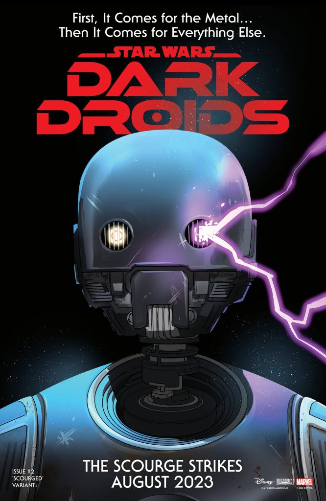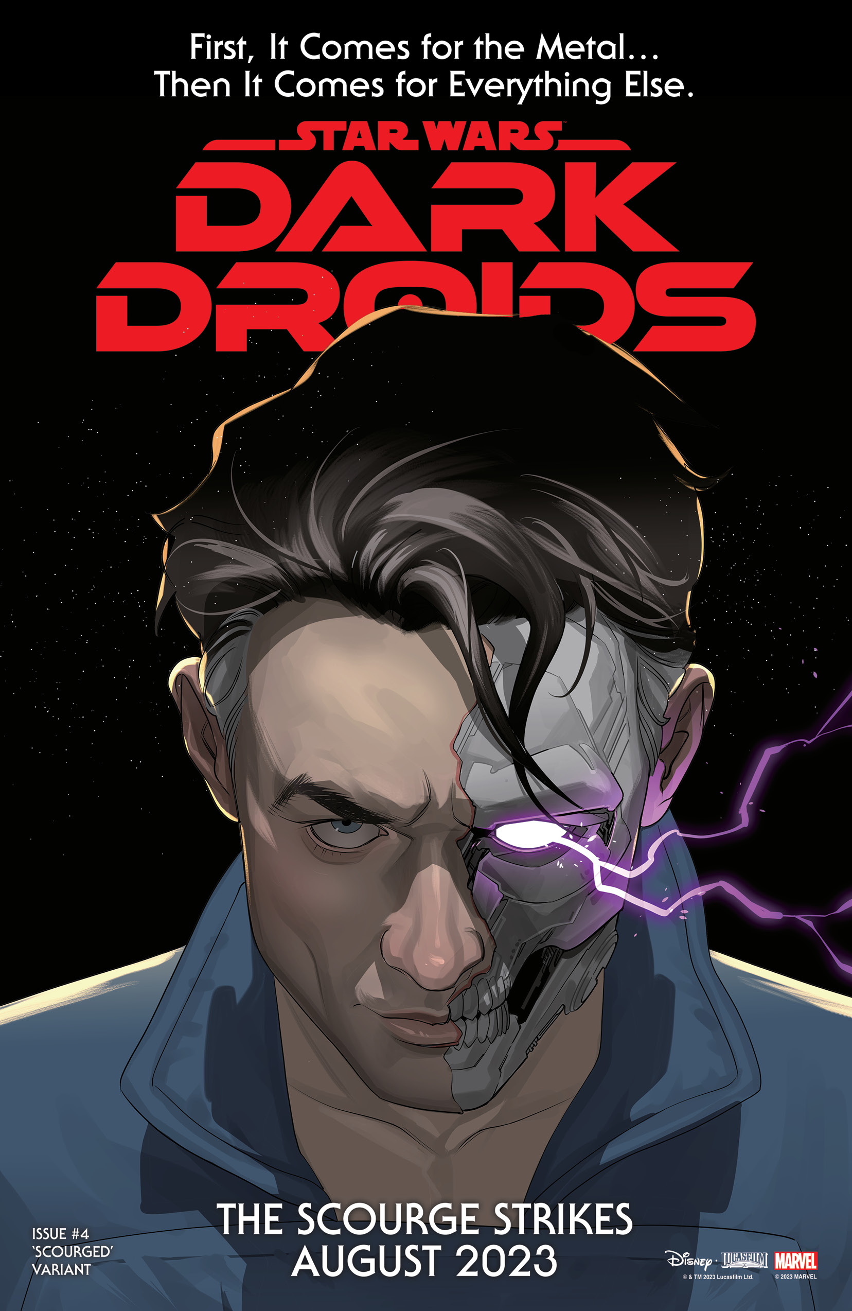 New York, NY— June 20, 2023 — First, it comes for the metal… Then it came for everything else. A new threat will be unleashed throughout the galaxy far, far away in STAR WARS: DARK DROIDS, the all-new Marvel Comics crossover event kicking off in August. Written by Charles Soule and drawn by Luke Ross, this dark and terrifying tale will introduce a malevolent entity known as the SCOURGE which will corrupt droids, cyborgs, and everything in between and cause chaos for the Empire and Rebellion alike.