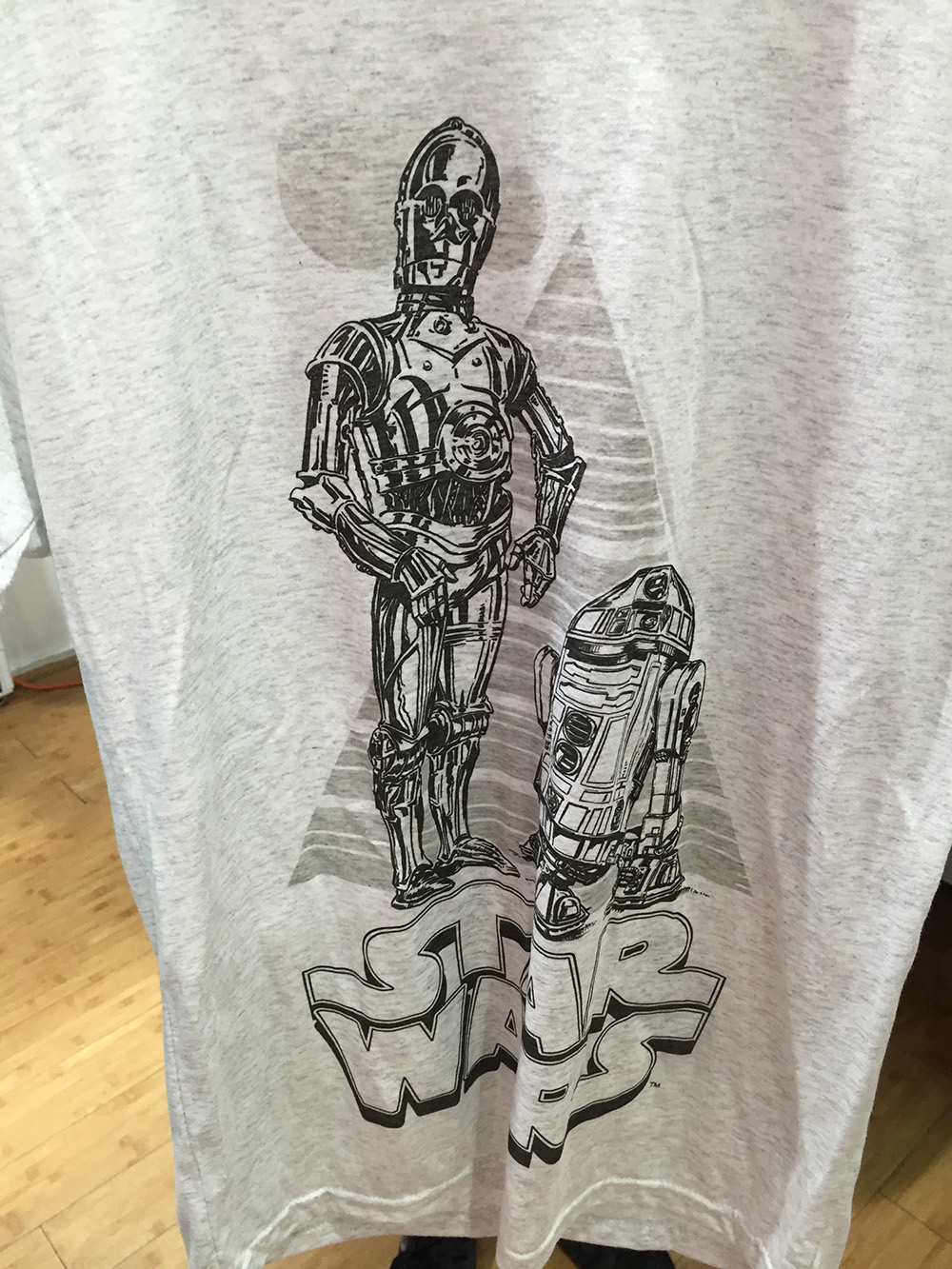The gist of these special shirts is that they change color in sunlight. In the store (as you can see in the C-3PO and R2-D2 example images below) the art on the shirts are typically one color, then when put in sunlight, they miraculously turn into full color works of art.