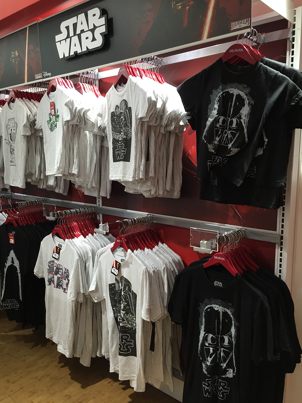 I quickly eyeballed the entire store from the entrance looking for these Star Wars items, and lo and behold, there was an entire section in the back dedicated to a galaxy far, far away! Upon first glance, I thought this was just another group of Star Wars t-shirts and that would have been fine, especially since the contained some amazing classic Star Wars artwork. But these were not your average Star Wars shirts. These were Color Changing Star Wars T-Shirts.