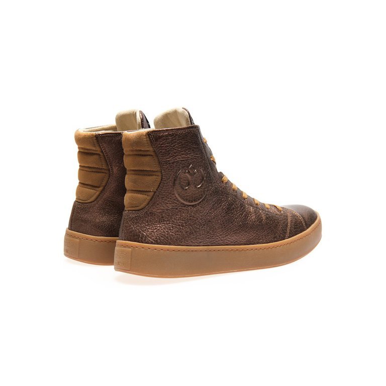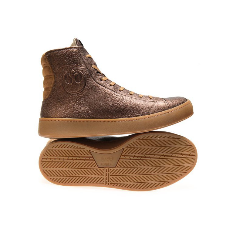 The latest in the co-branded Star Wars l Po-Zu limited edition footwear range has been announced by Po-Zu today. Joining the women’s Silver Linen RESISTANCE High Top, a Limited-Edition High Top Bronze Leather RESISTANCE Sneaker for men available to pre-order today.