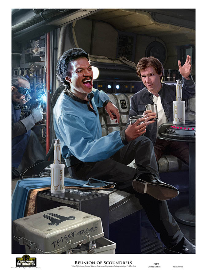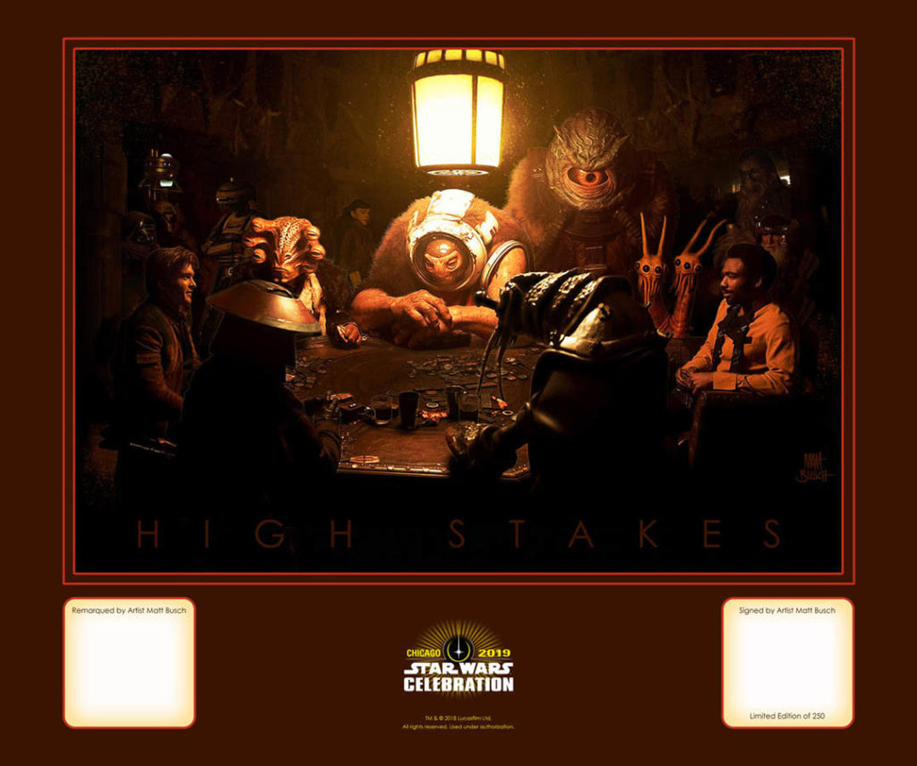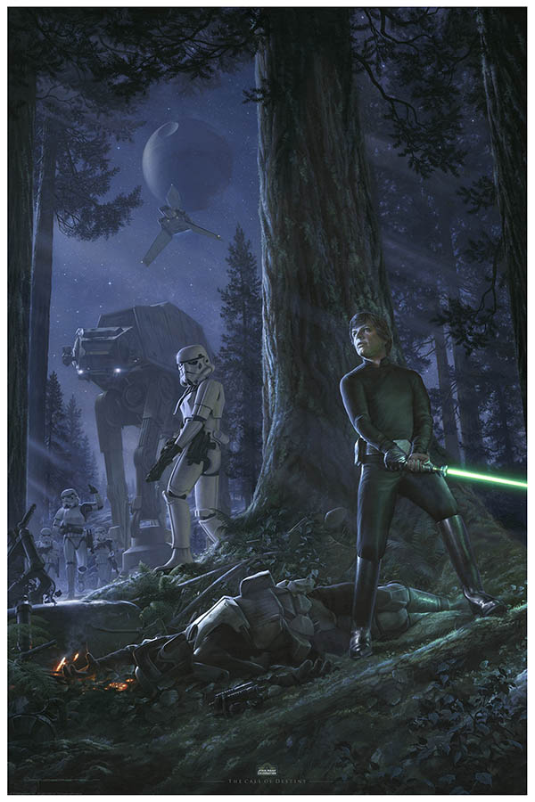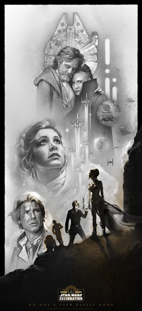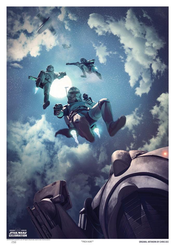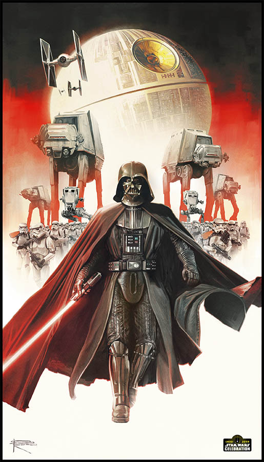For those of you Star Wars art fans, Dark Ink Arts has been updated with the list of official artists and official Star Wars Celebration Chicago art prints that can be purchased at the convention. These prints will go up for pre-order this afternoon at noon PST until March 15 at noon PST. The leftovers will be made available to Celebration Chicago attendees. Keep in mind you can only pre-order if you plan on being at the convention to pick them up.